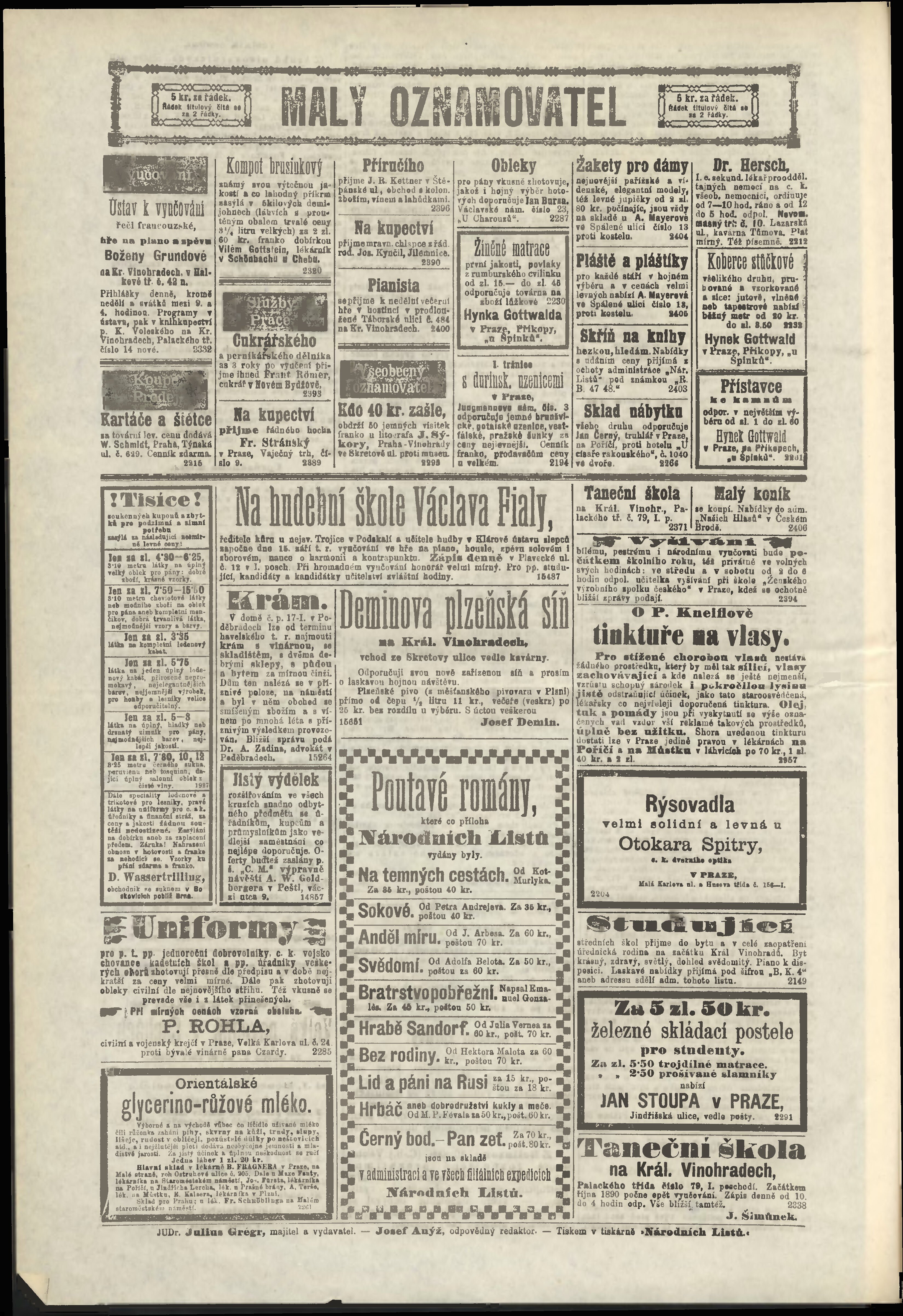 * Datum vydání výtisku: 17.9.1890 Číslo výtisku: 256 Poznámky k výtisku: odpolední vydání;