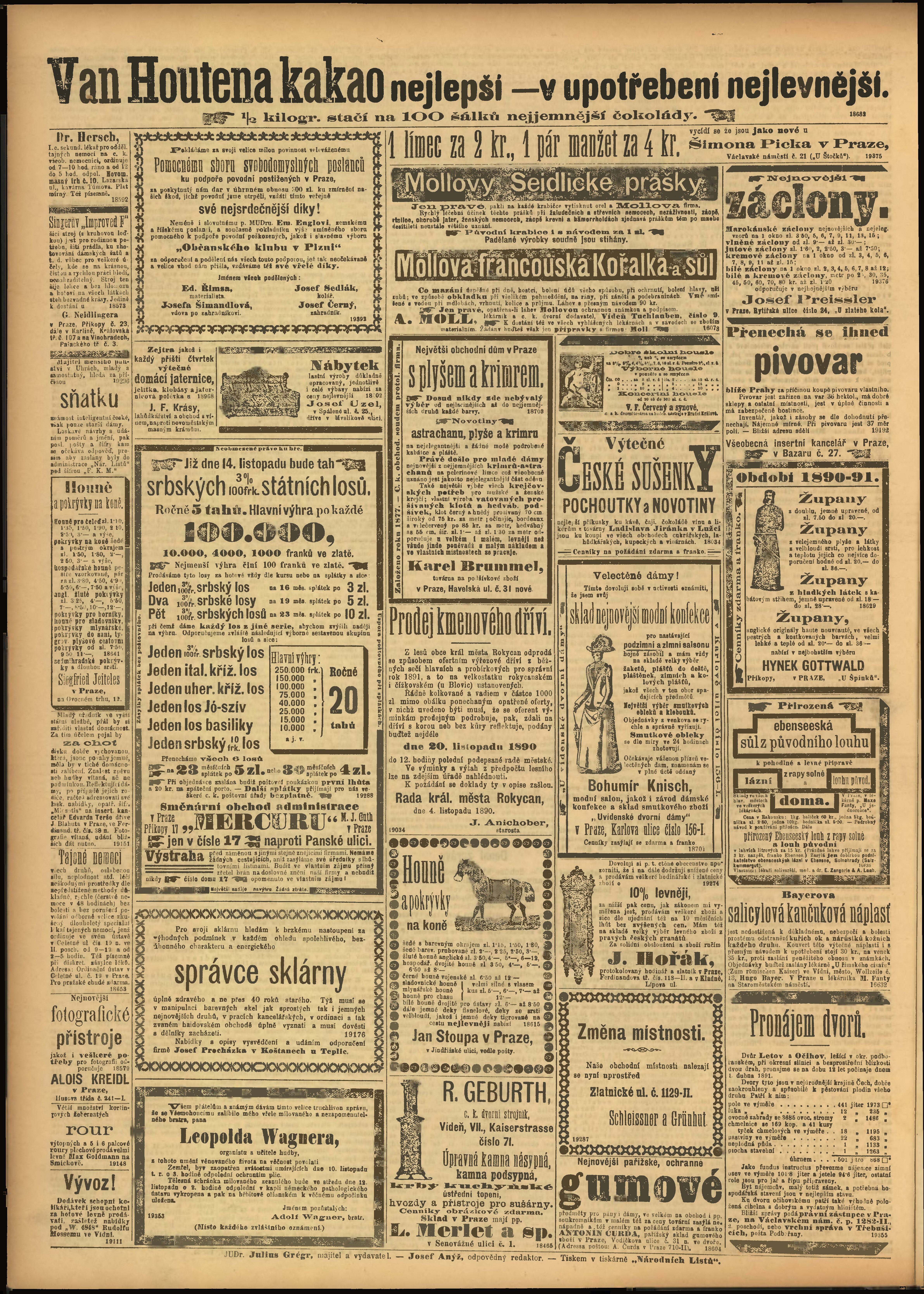 * Datum vydání výtisku: 12.11.1890 Číslo výtisku: 312