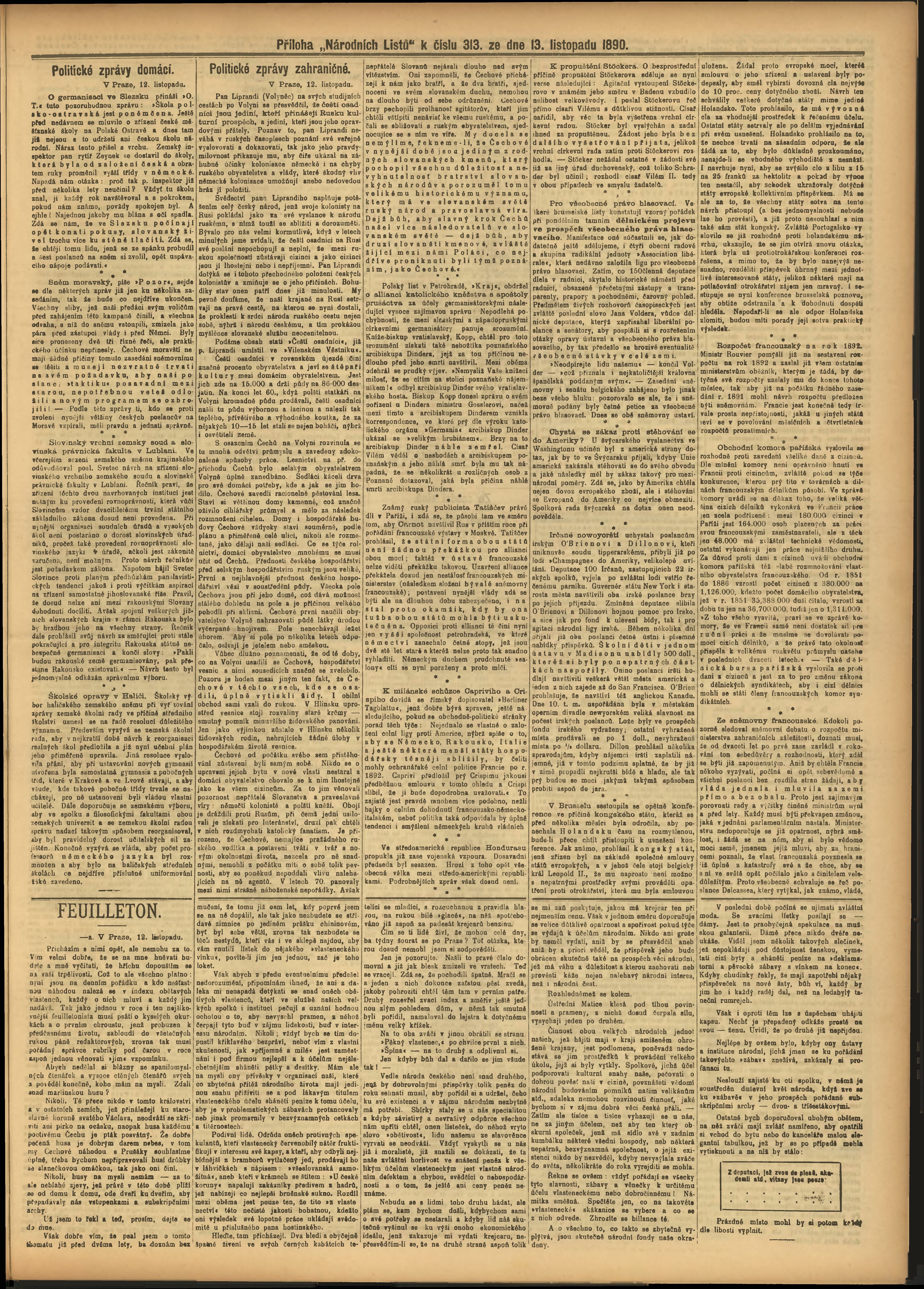* Datum vydání výtisku: 13.11.1890 Číslo výtisku: 313