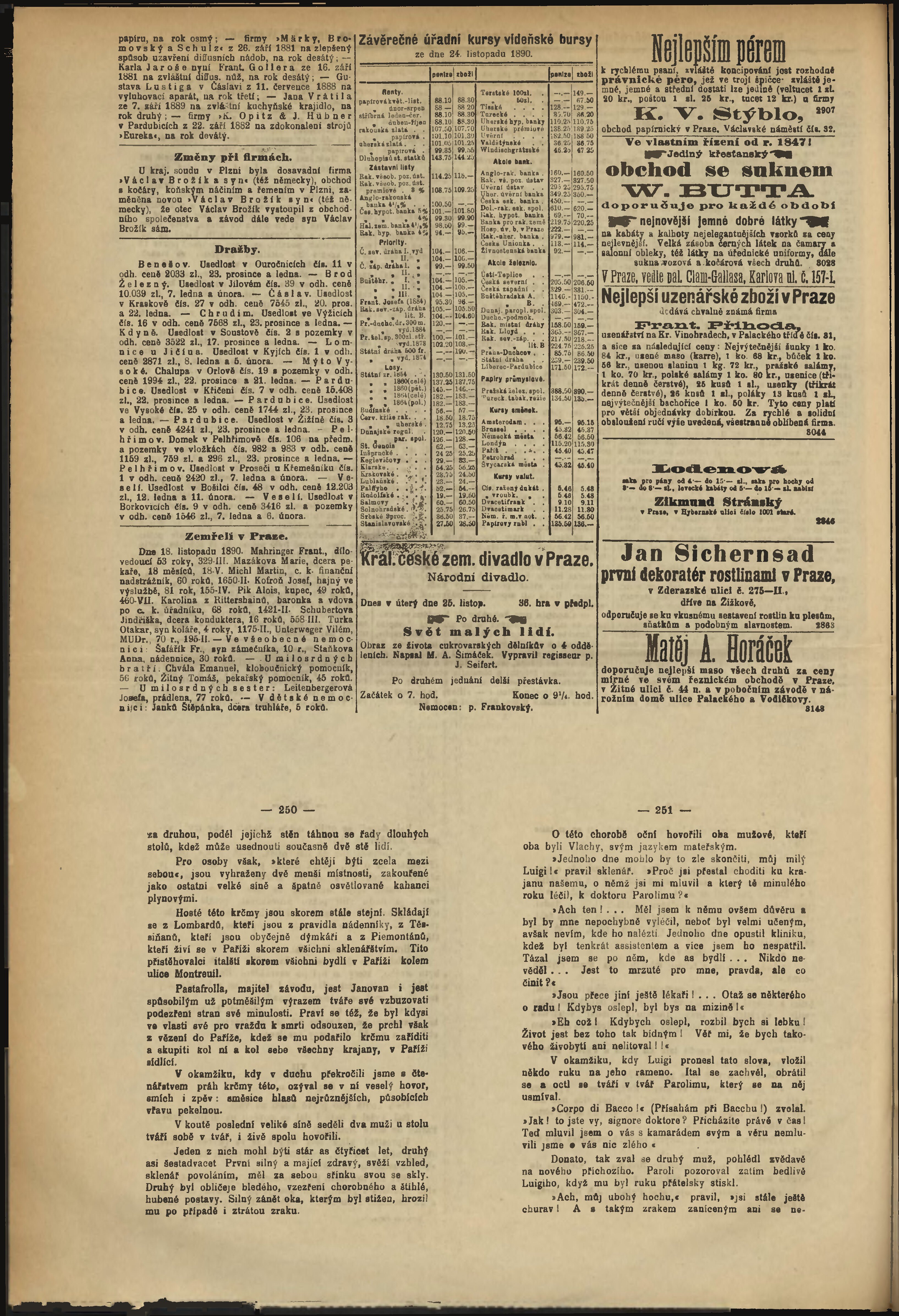 * Datum vydání výtisku: 25.11.1890 Číslo výtisku: 325 Poznámky k výtisku: odpolední vydání;