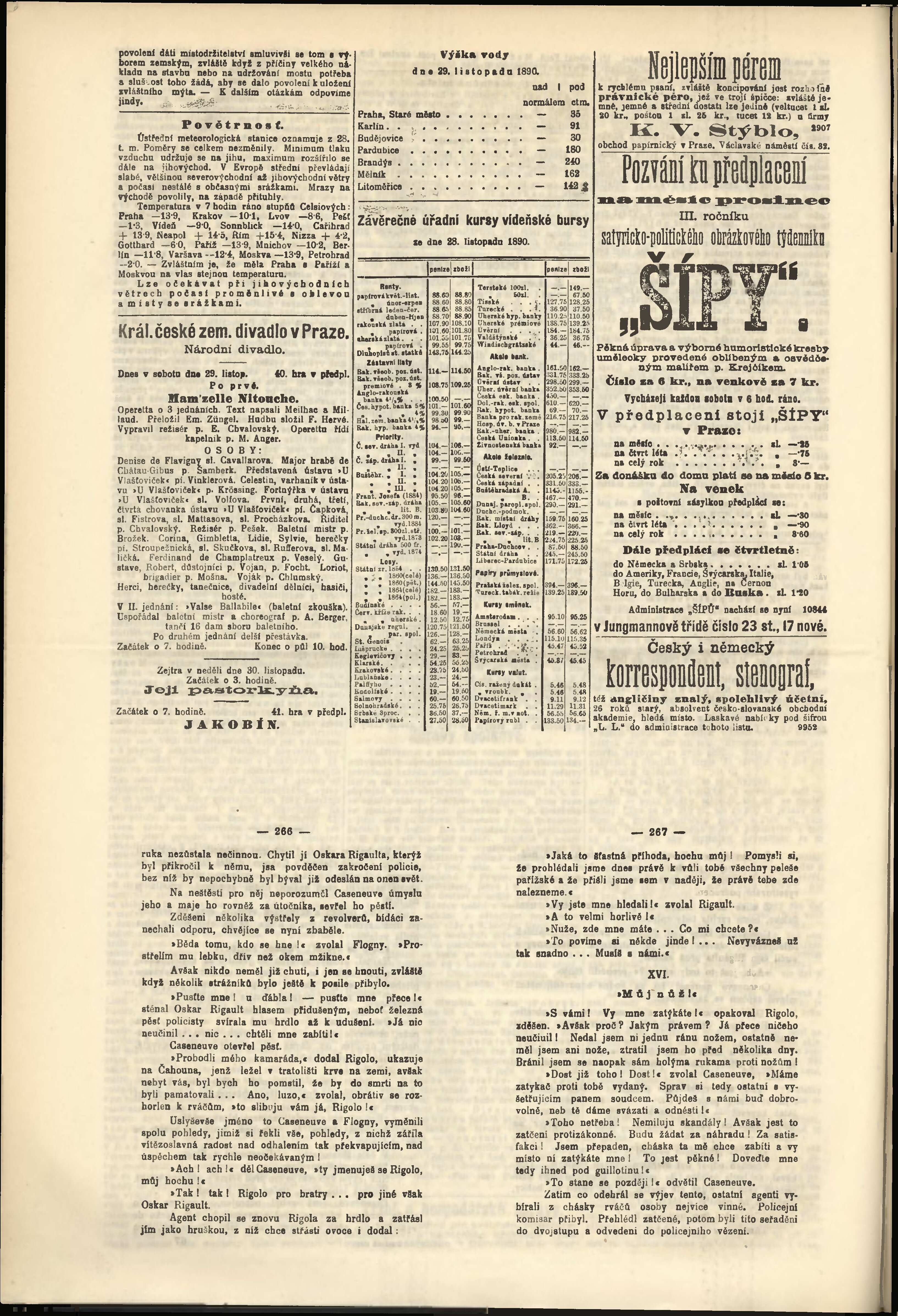 * Datum vydání výtisku: 29.11.1890 Číslo výtisku: 329 Poznámky k výtisku: odpolední vydání;