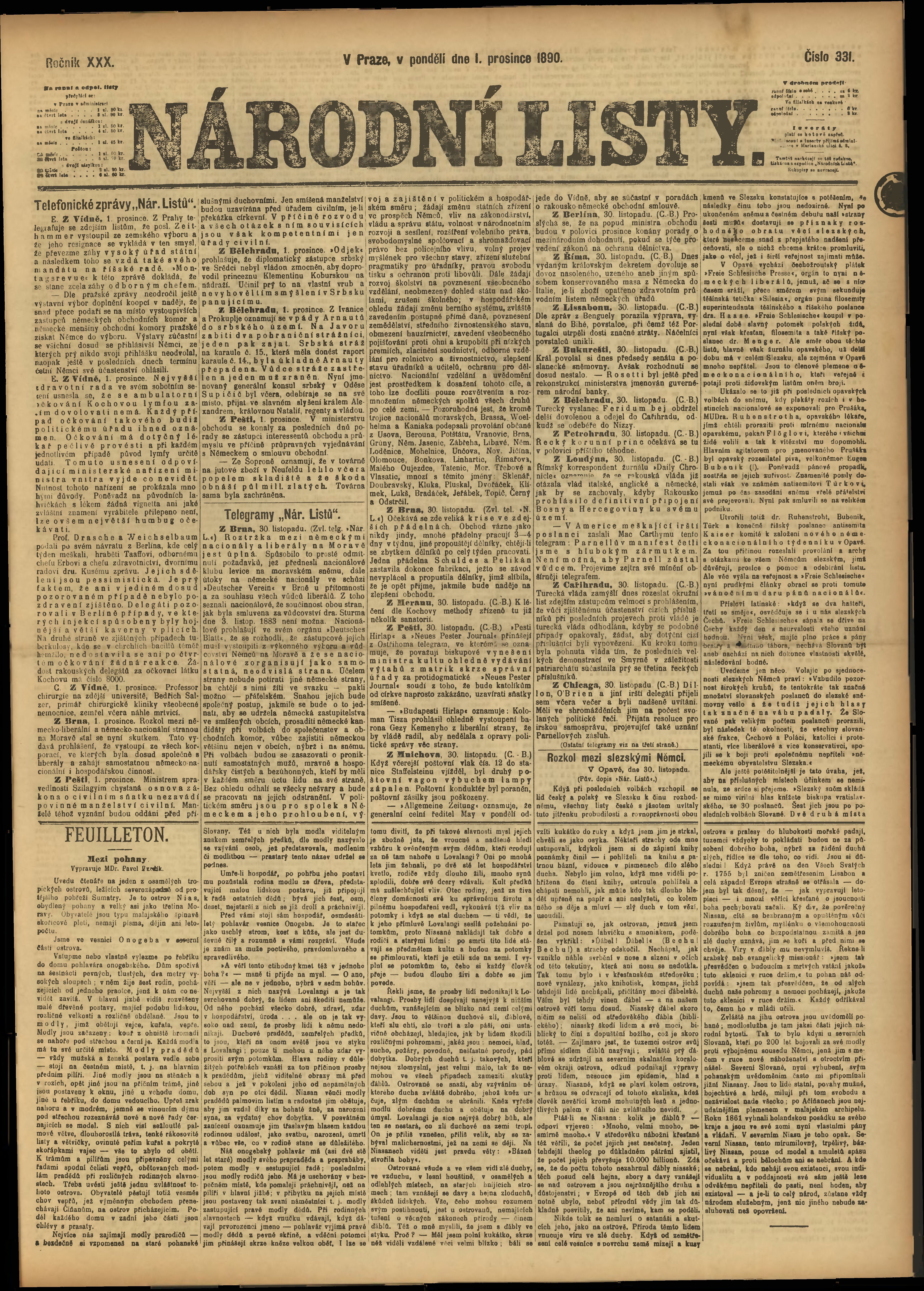 * Datum vydání výtisku: 1.12.1890 Číslo výtisku: 331