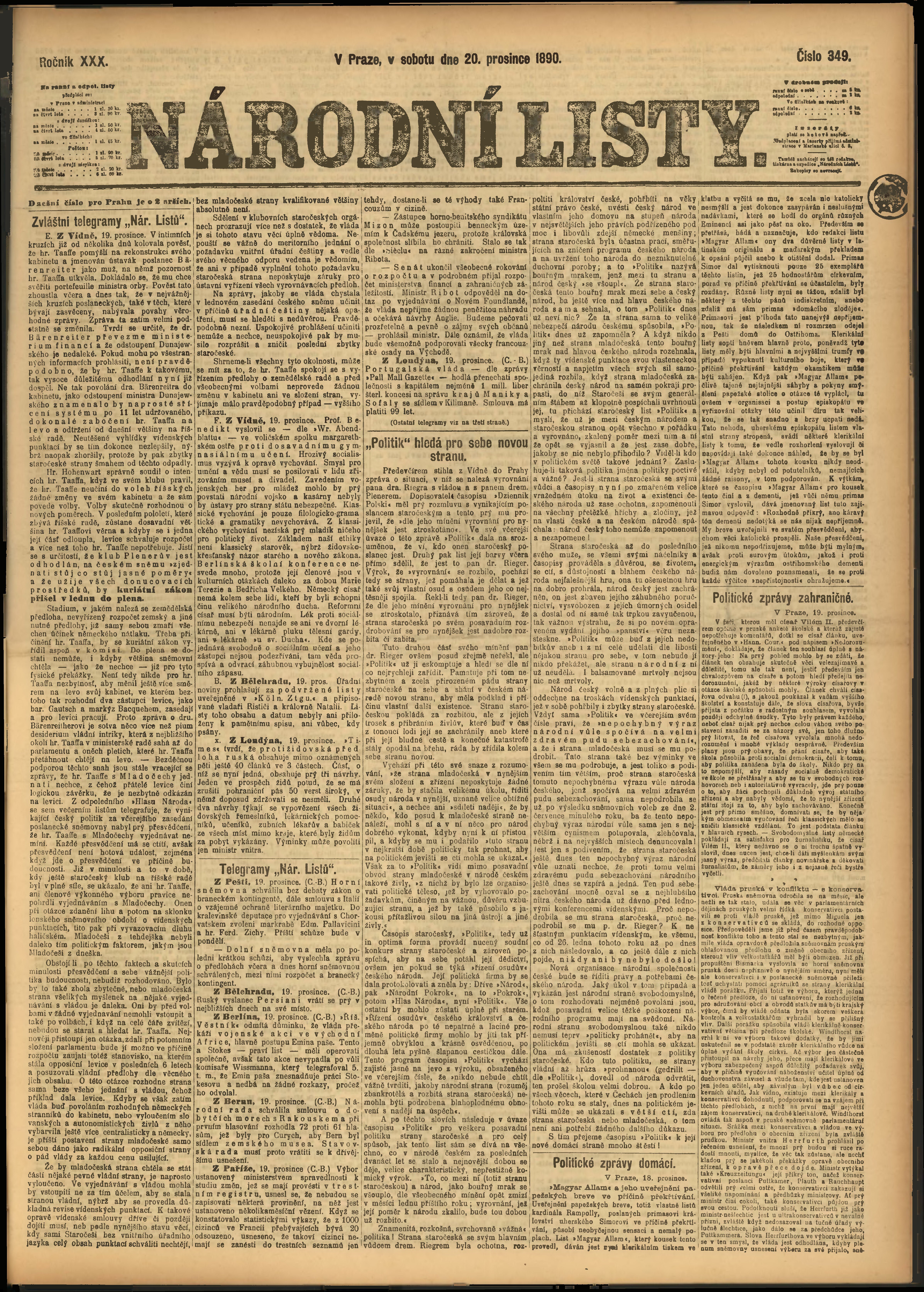 * Datum vydání výtisku: 20.12.1890 Číslo výtisku: 349