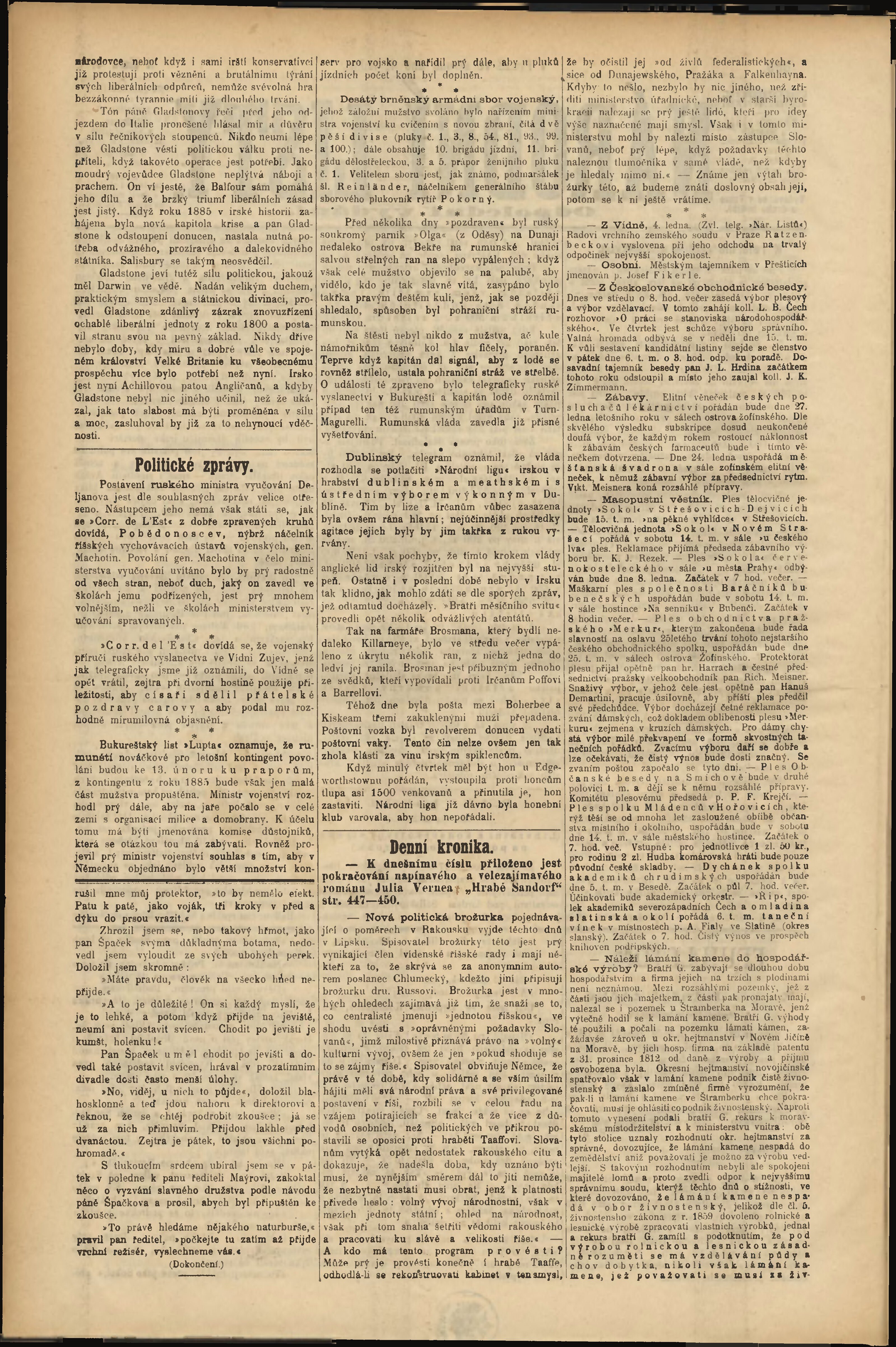 * Datum vydání výtisku: 4.1.1888 Číslo výtisku: 4 Poznámky k výtisku: odpolední vydání;