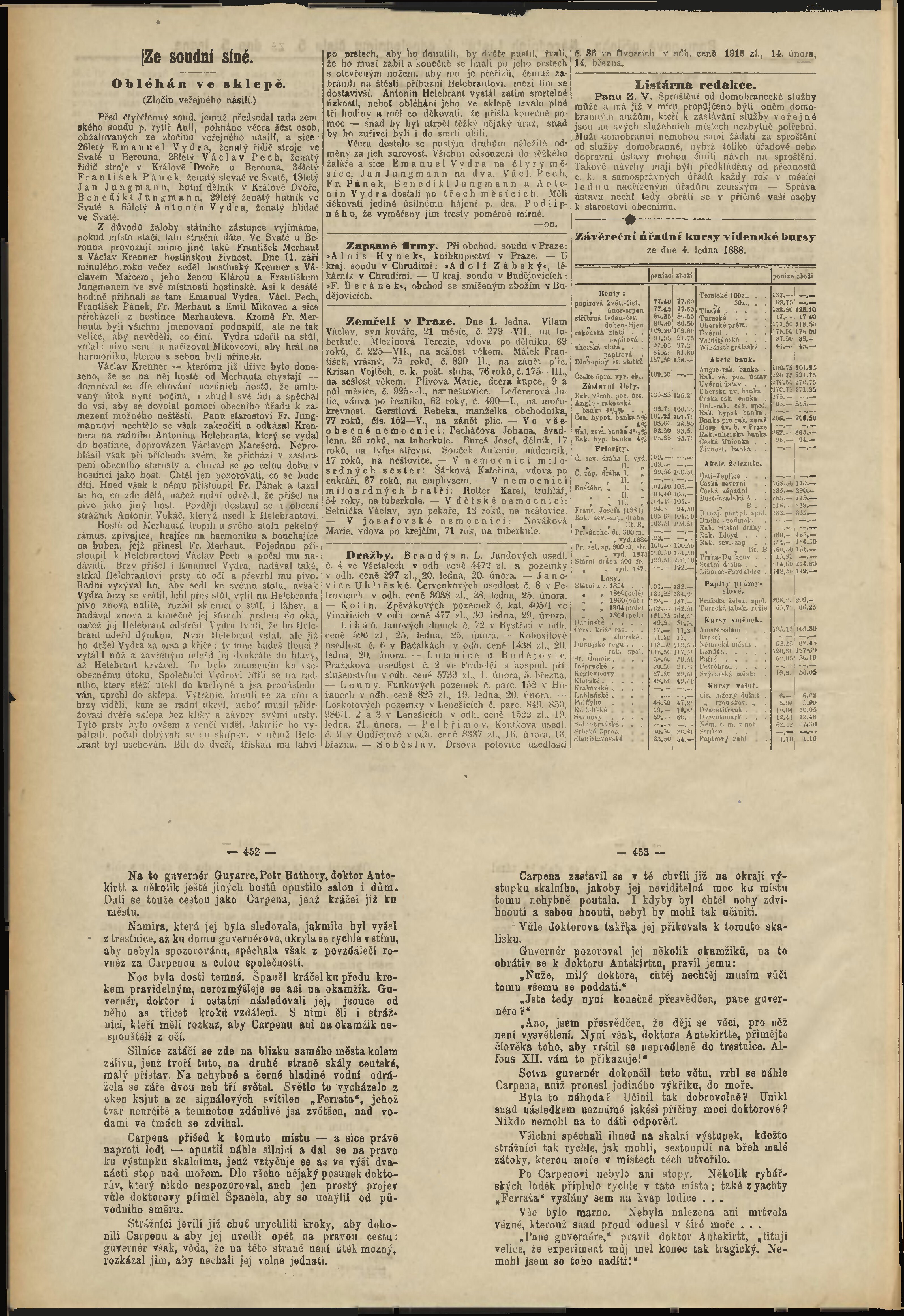 * Datum vydání výtisku: 5.1.1888 Číslo výtisku: 5 Poznámky k výtisku: odpolední vydání;