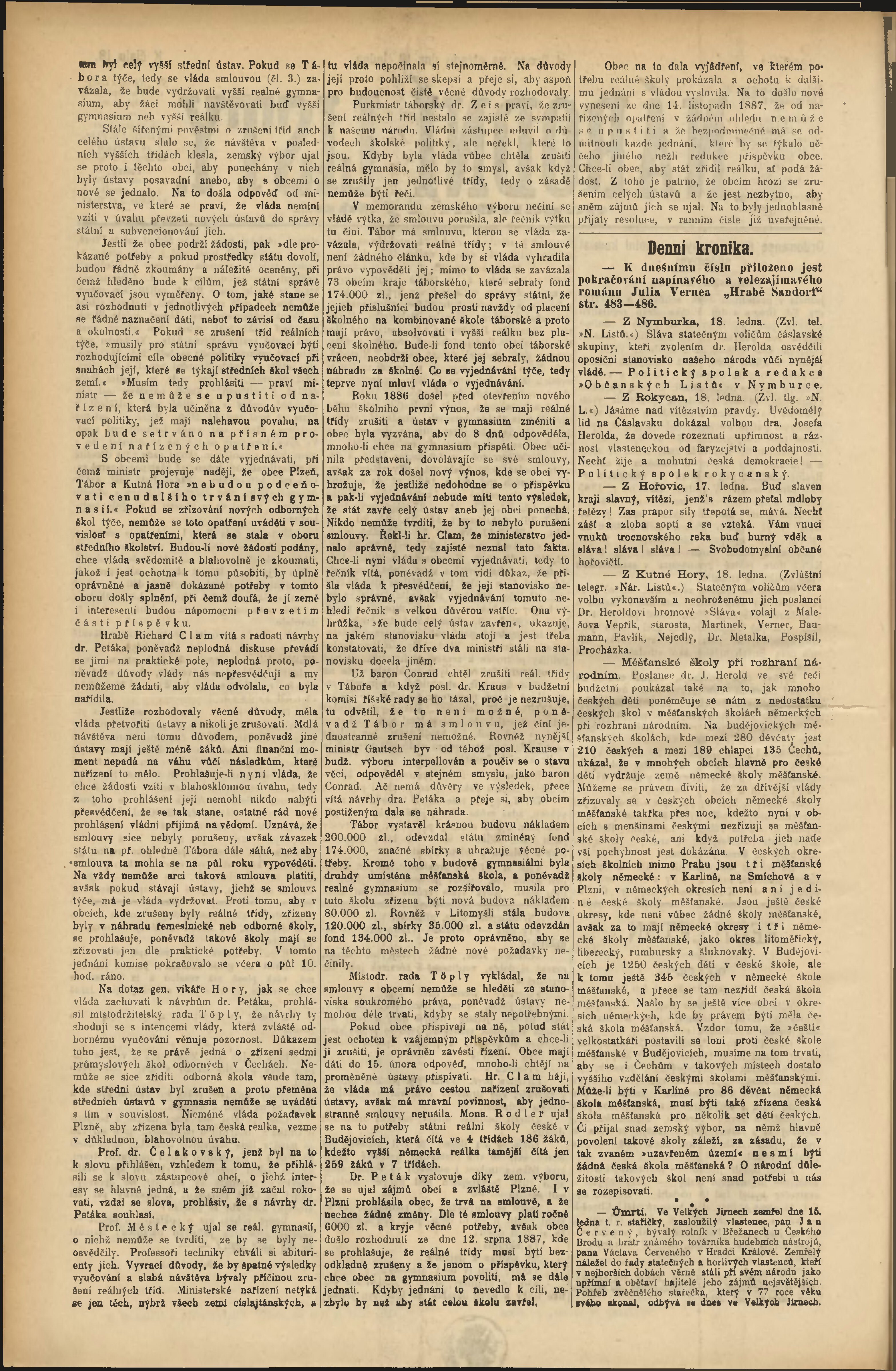 * Datum vydání výtisku: 18.1.1888 Číslo výtisku: 18 Poznámky k výtisku: odpolední vydání;