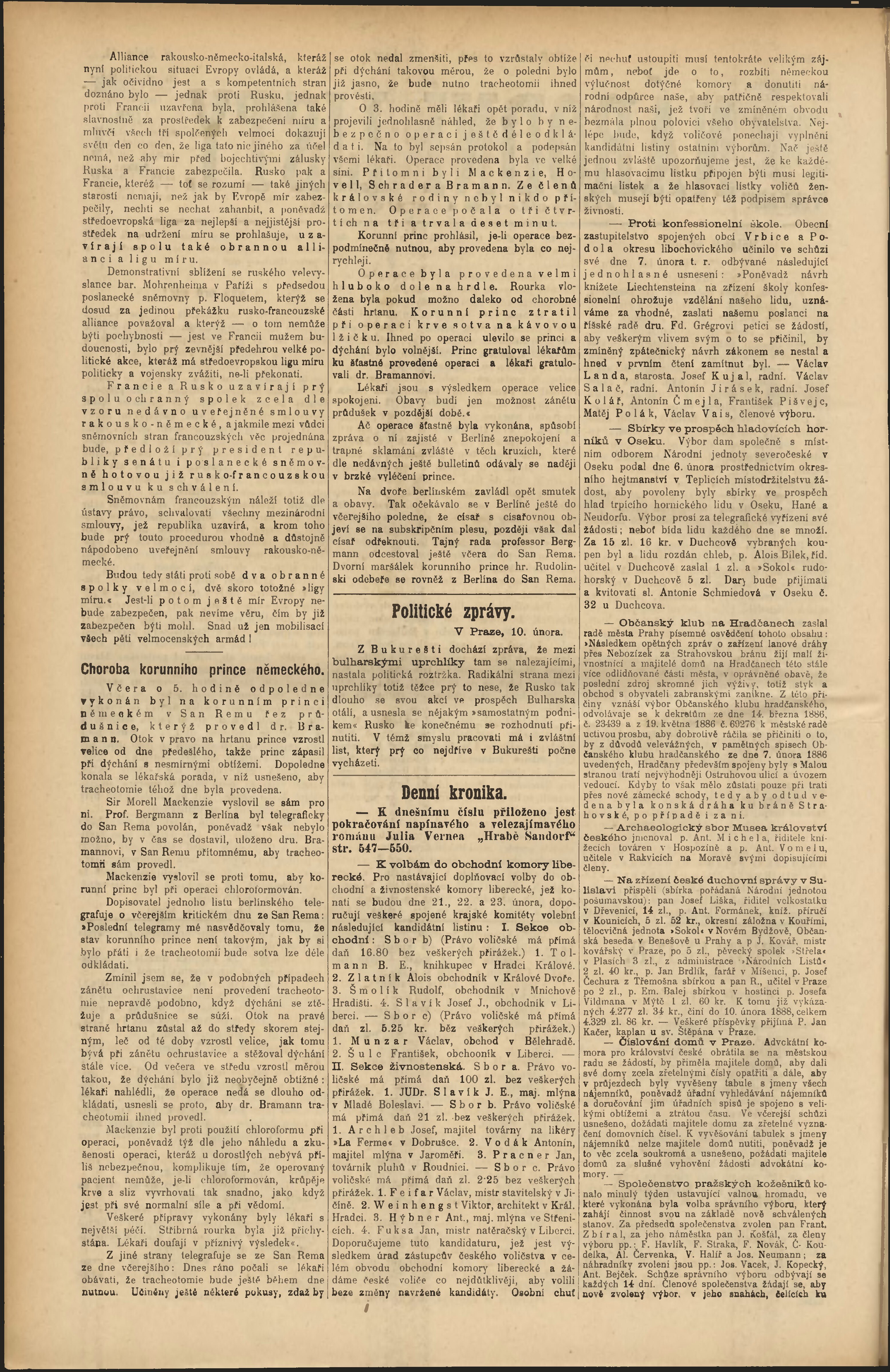 * Datum vydání výtisku: 10.2.1888 Číslo výtisku: 41 Poznámky k výtisku: odpolední vydání;