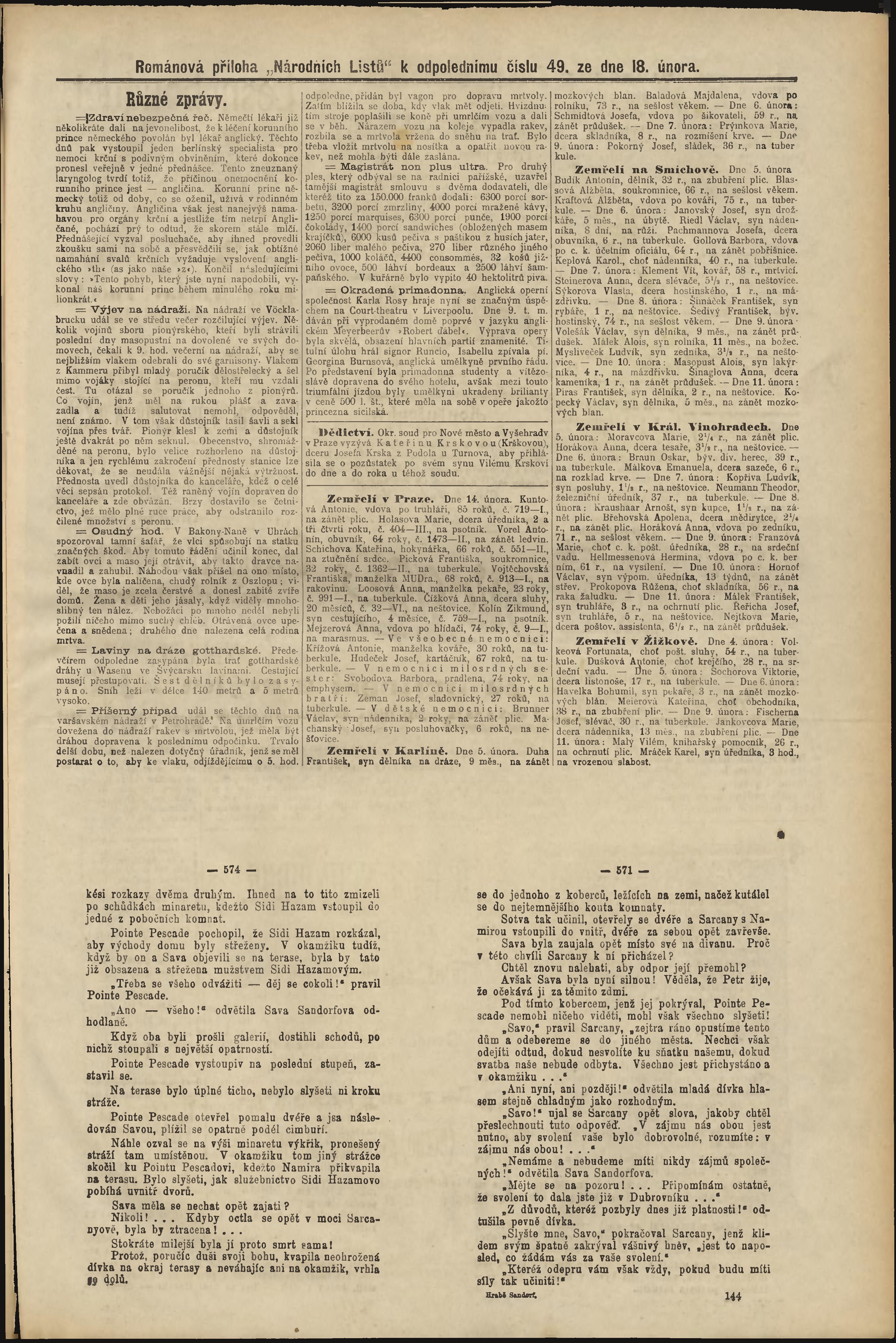 * Datum vydání výtisku: 18.2.1888 Číslo výtisku: 49 Poznámky k výtisku: odpolední vydání;