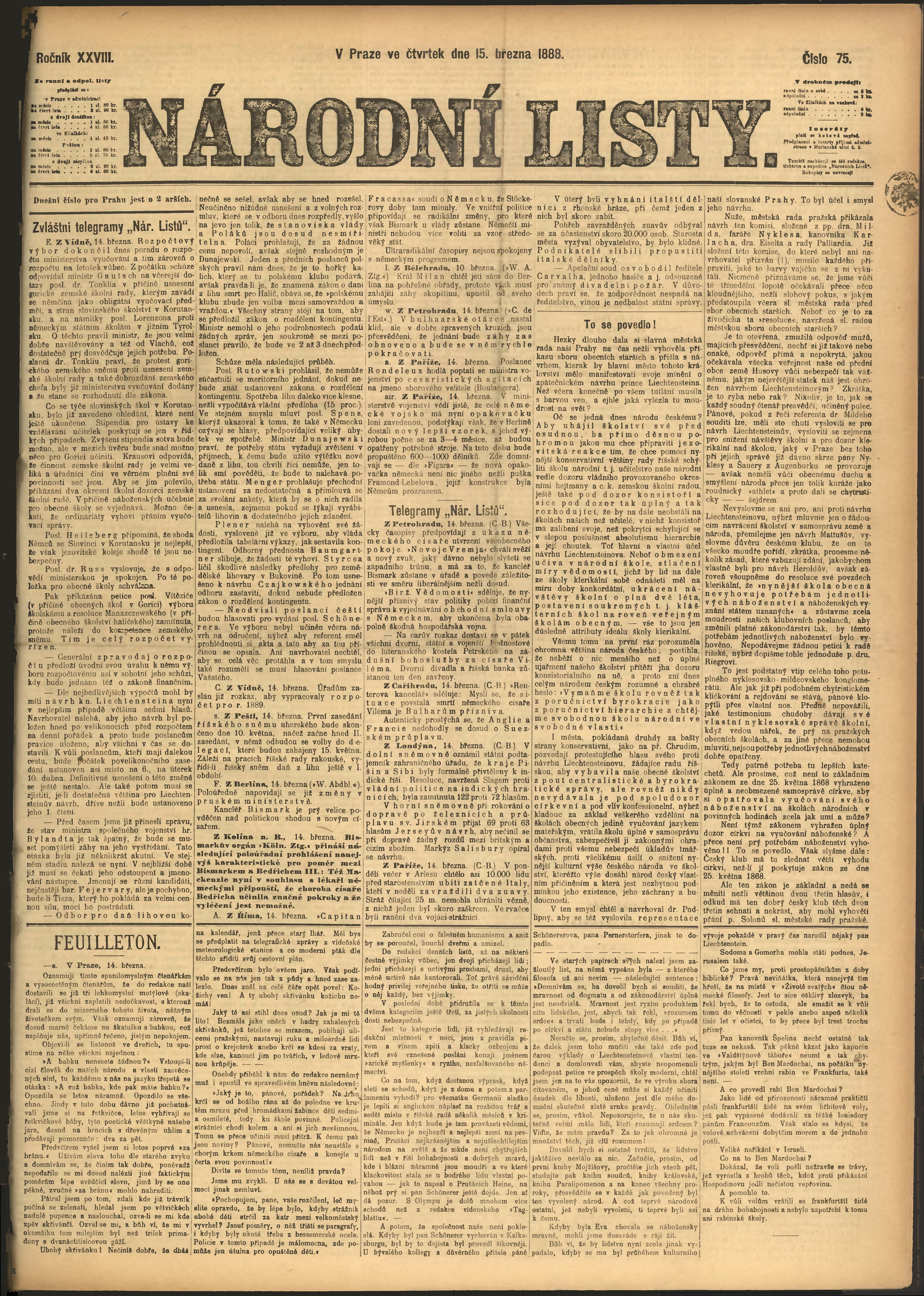 * Datum vydání výtisku: 15.3.1888 Číslo výtisku: 75