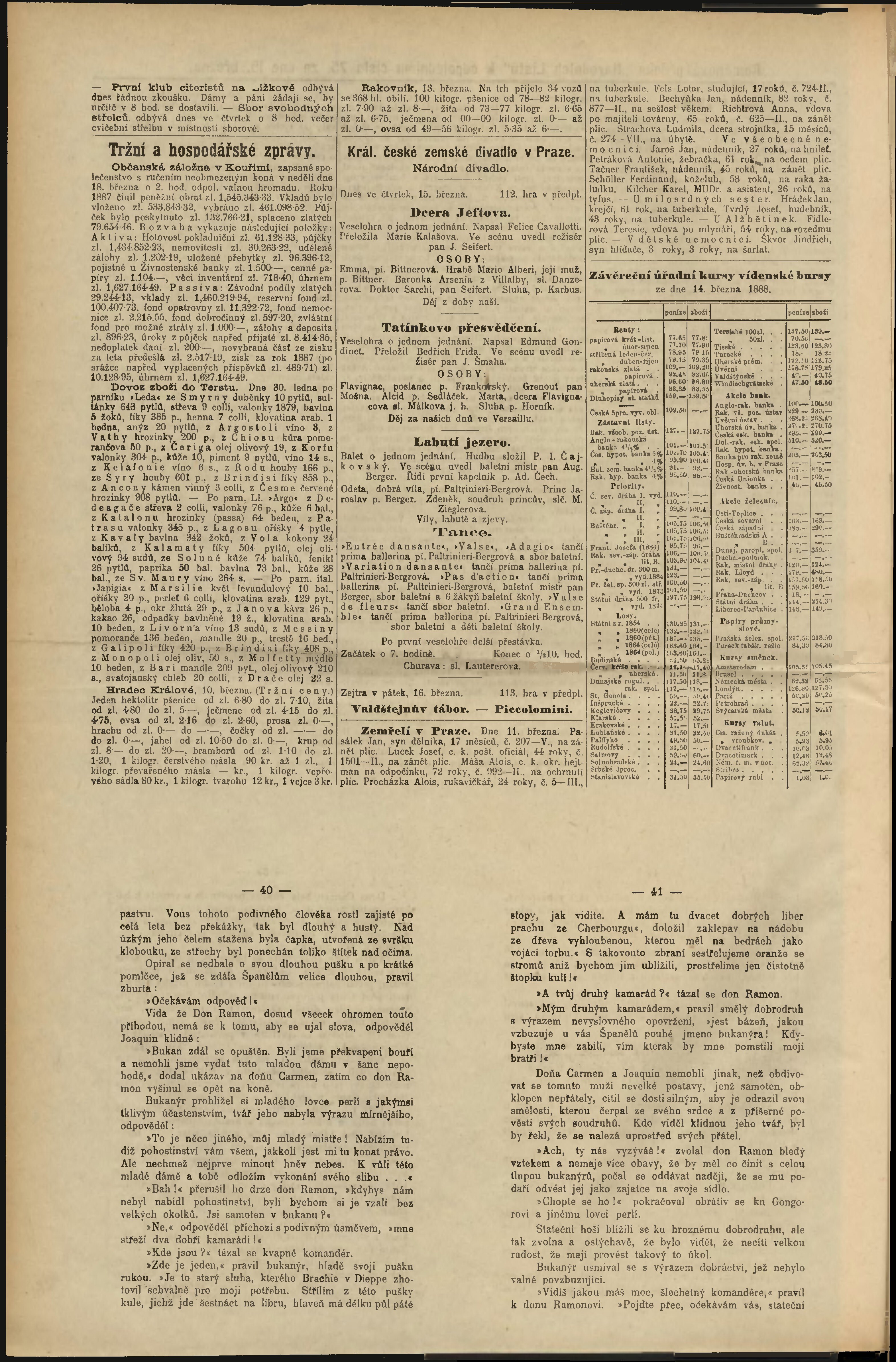 * Datum vydání výtisku: 15.3.1888 Číslo výtisku: 75 Poznámky k výtisku: odpolední vydání;