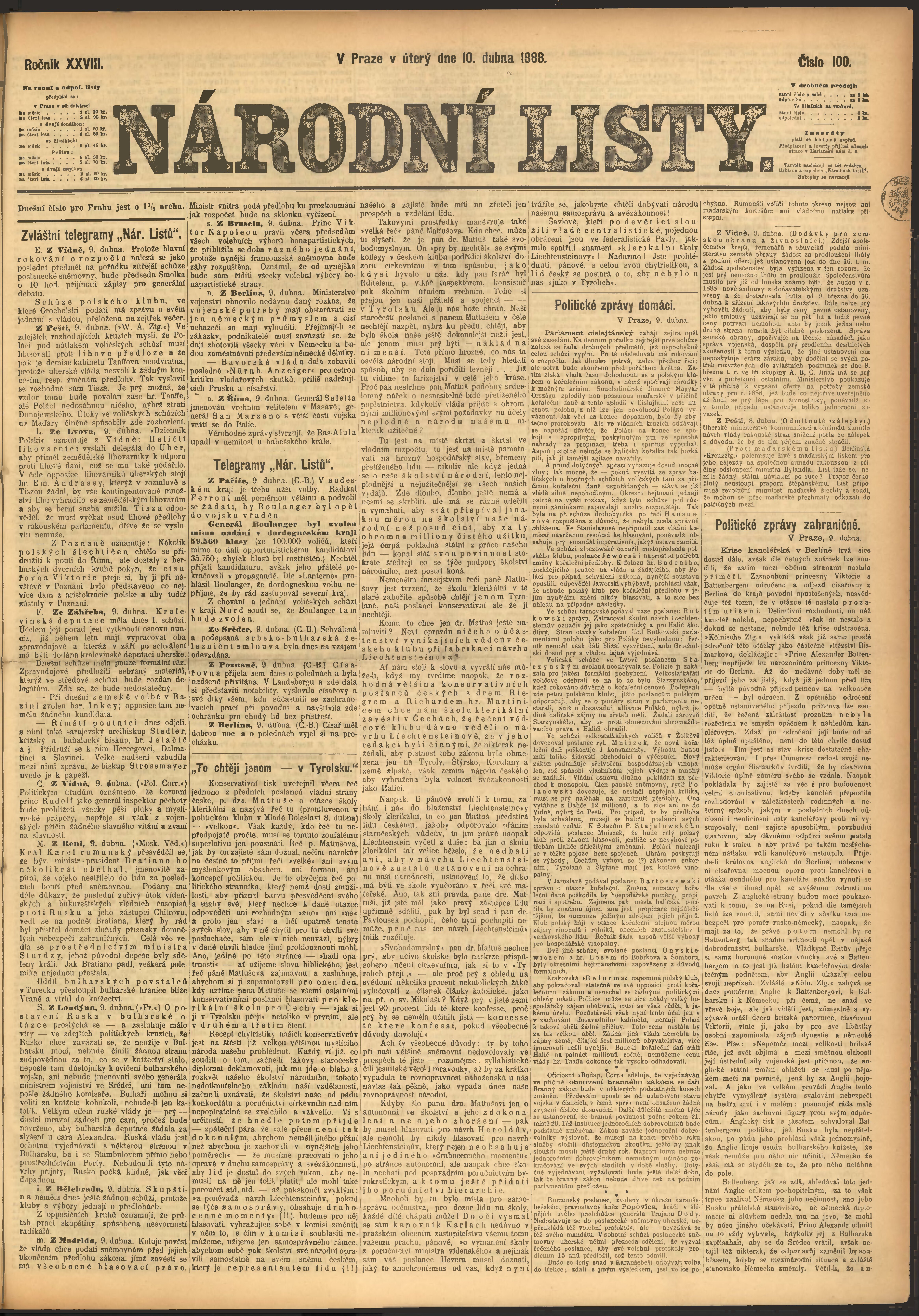 * Datum vydání výtisku: 10.4.1888 Číslo výtisku: 100