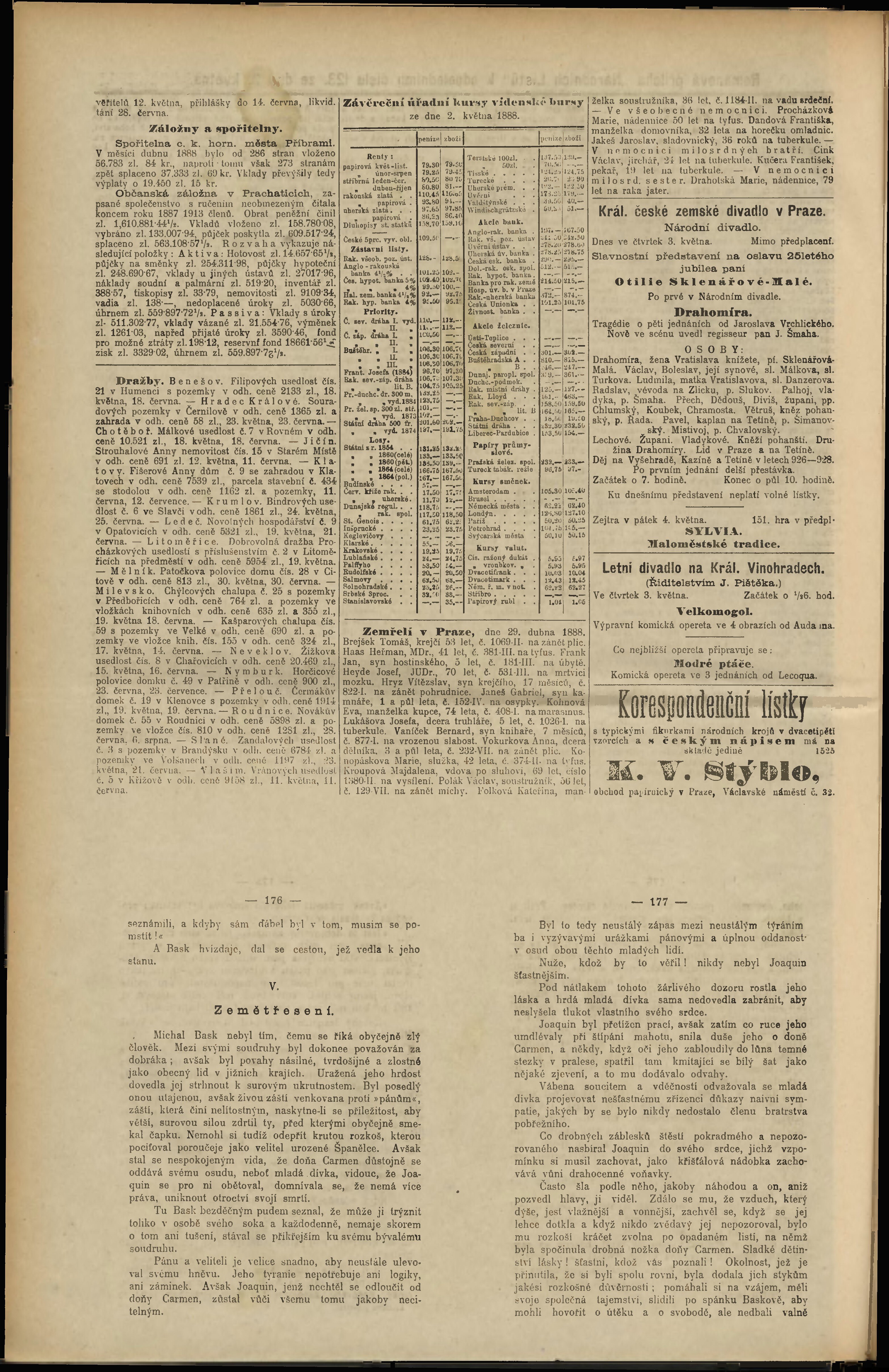 * Datum vydání výtisku: 3.5.1888 Číslo výtisku: 123 Poznámky k výtisku: odpolední vydání;