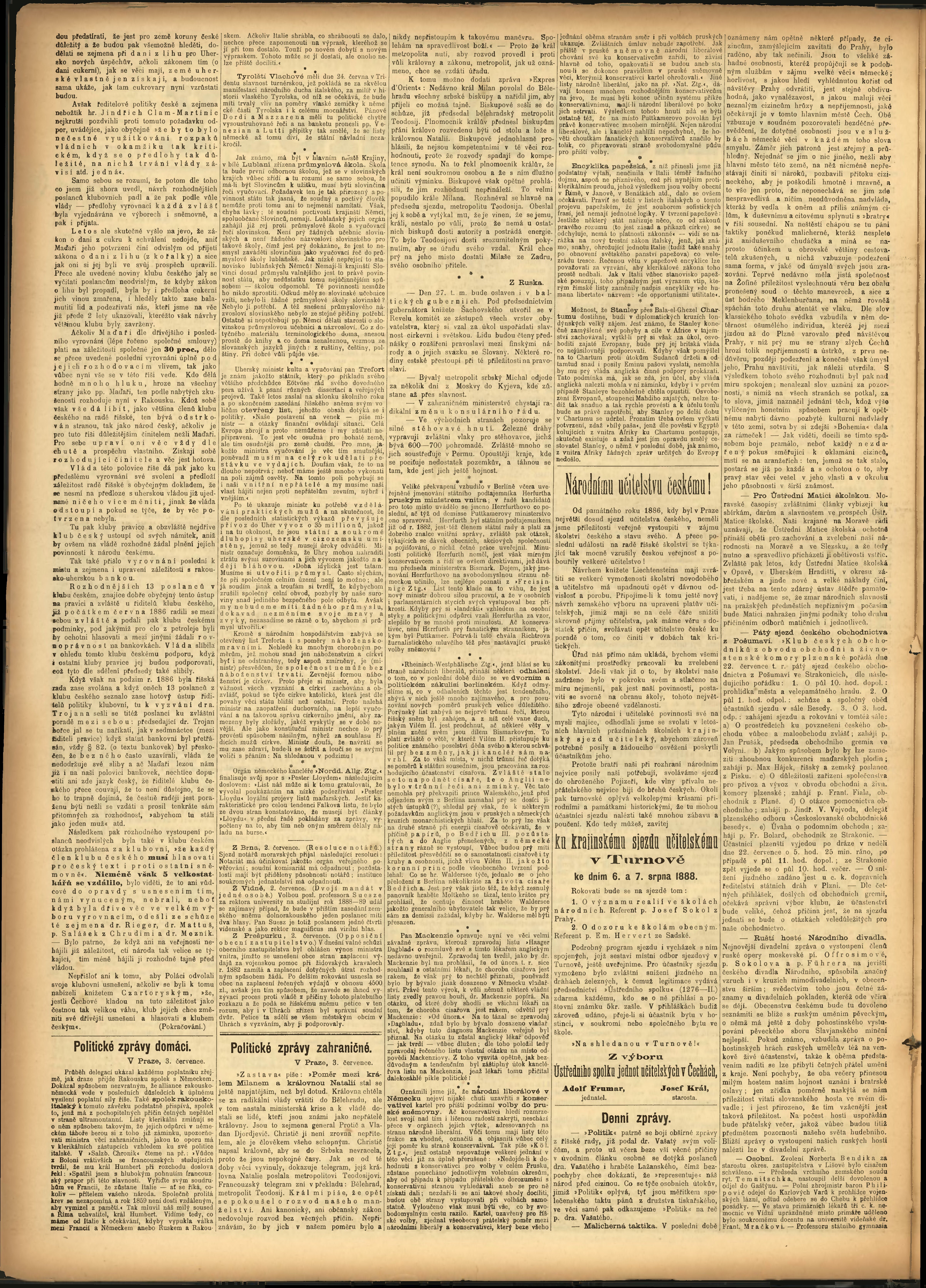 * Datum vydání výtisku: 4.7.1888 Číslo výtisku: 184