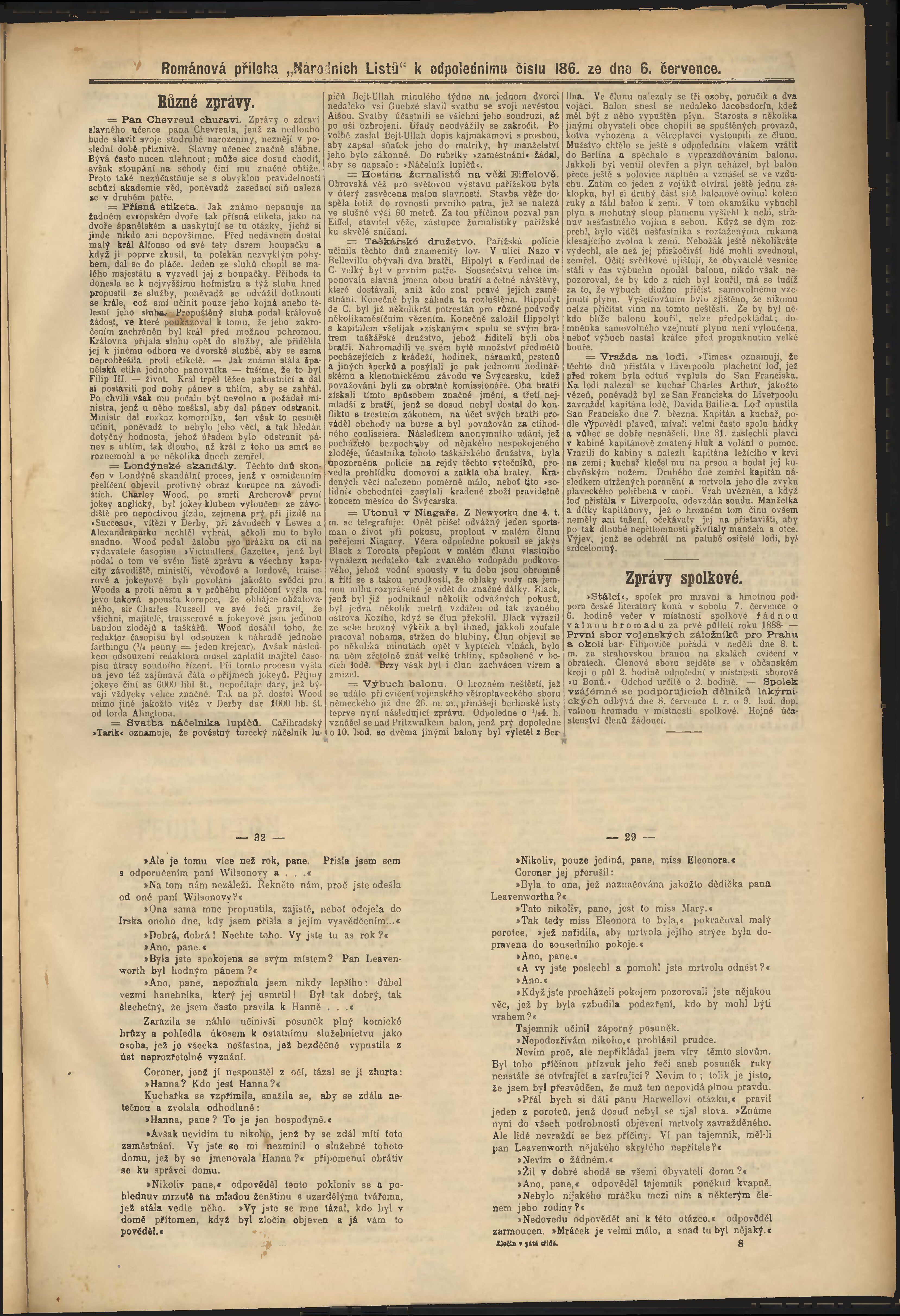 * Datum vydání výtisku: 6.7.1888 Číslo výtisku: 186 Poznámky k výtisku: odpolední vydání;