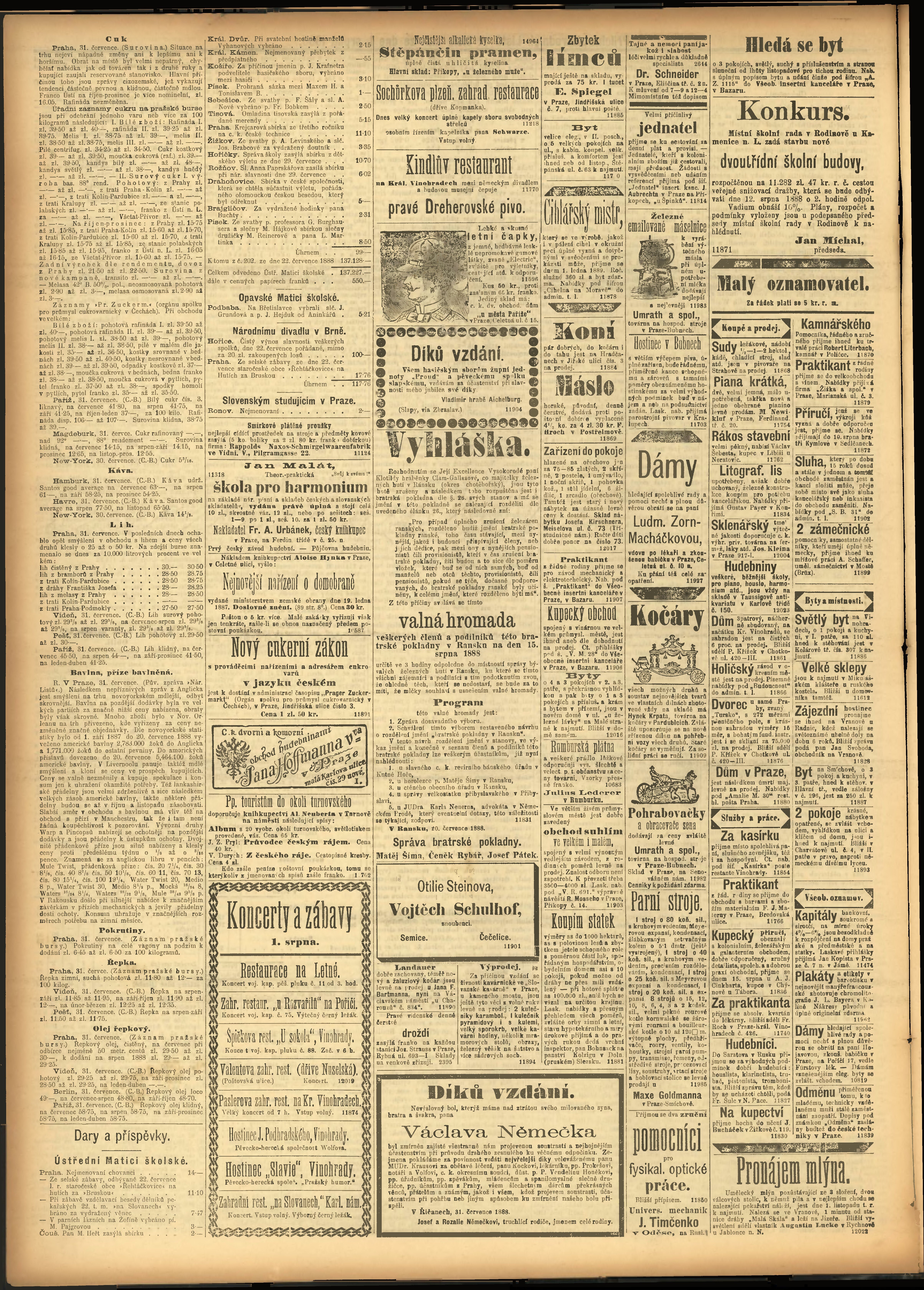 * Datum vydání výtisku: 1.8.1888 Číslo výtisku: 212
