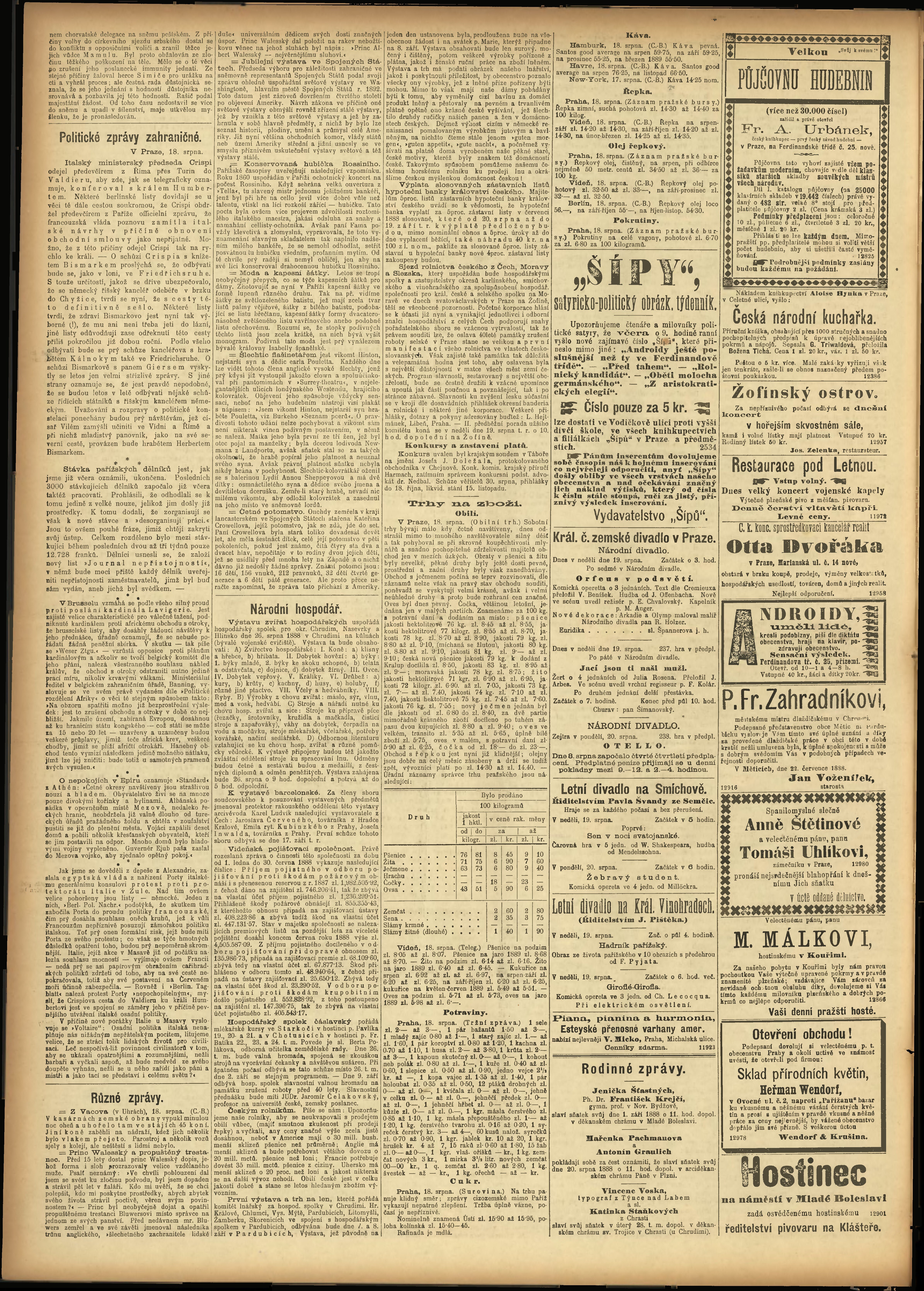 * Datum vydání výtisku: 19.8.1888 Číslo výtisku: 230