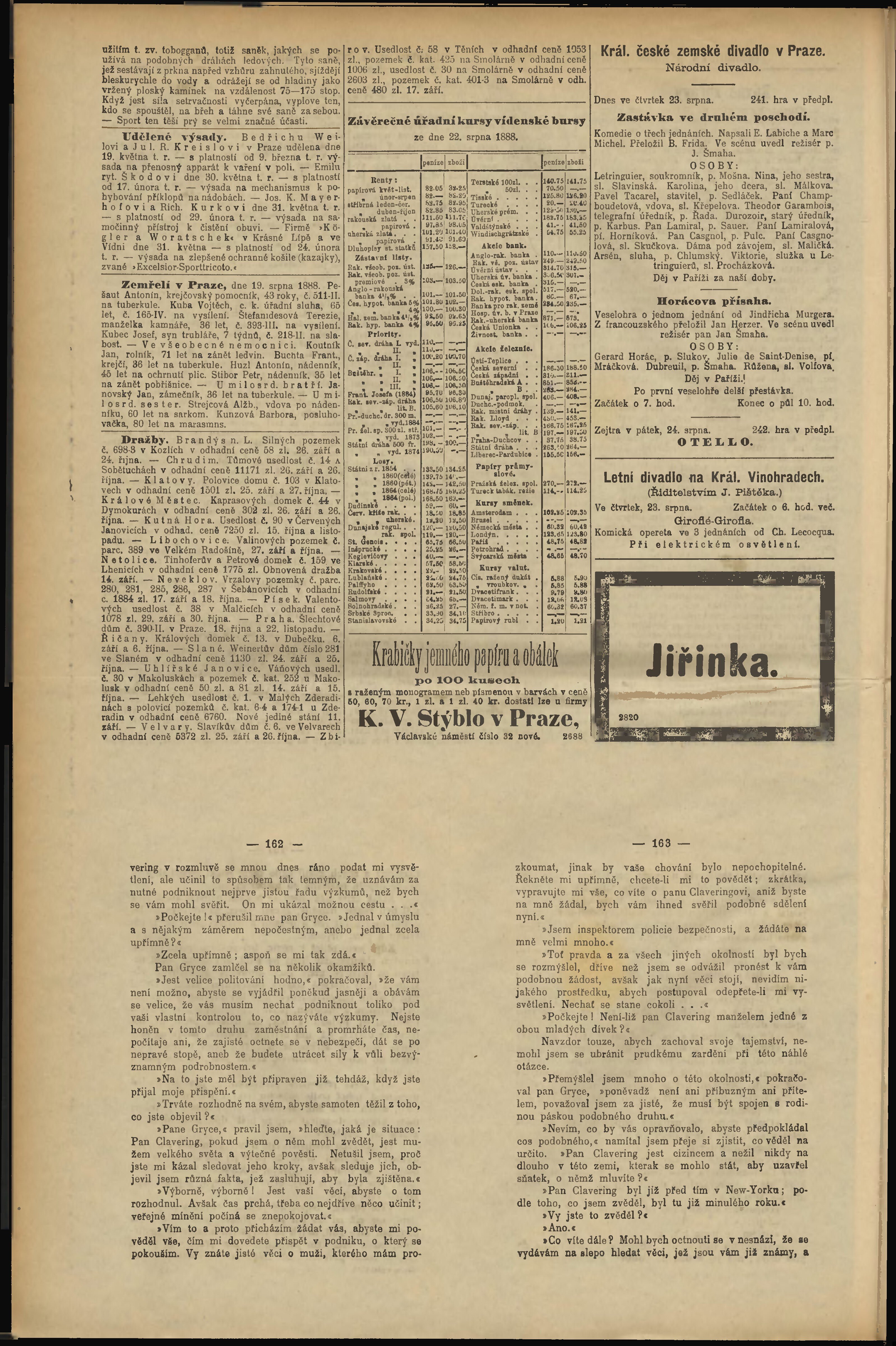 * Datum vydání výtisku: 23.8.1888 Číslo výtisku: 234 Poznámky k výtisku: odpolední vydání;