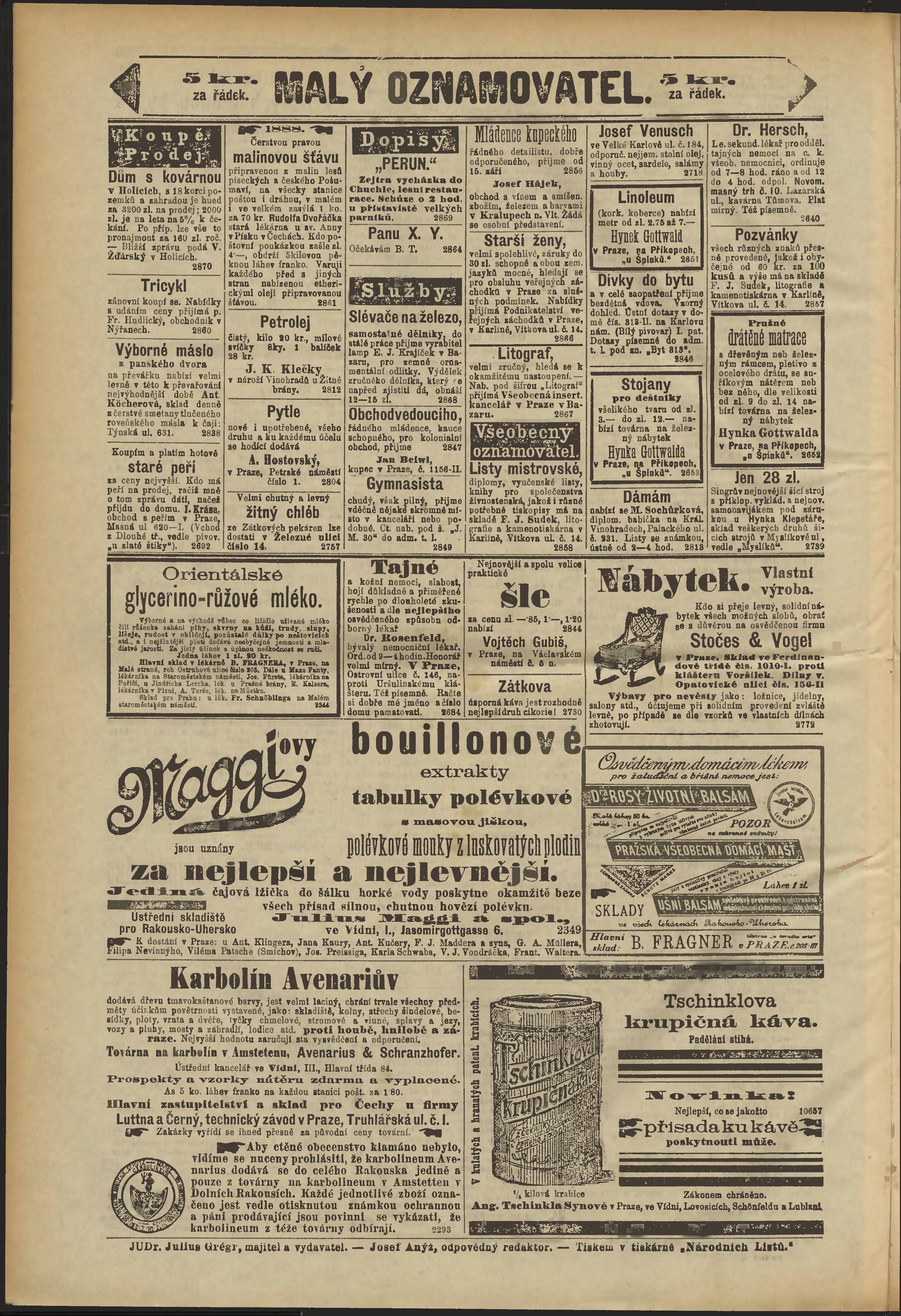* Datum vydání výtisku: 25.8.1888 Číslo výtisku: 236 Poznámky k výtisku: odpolední vydání;