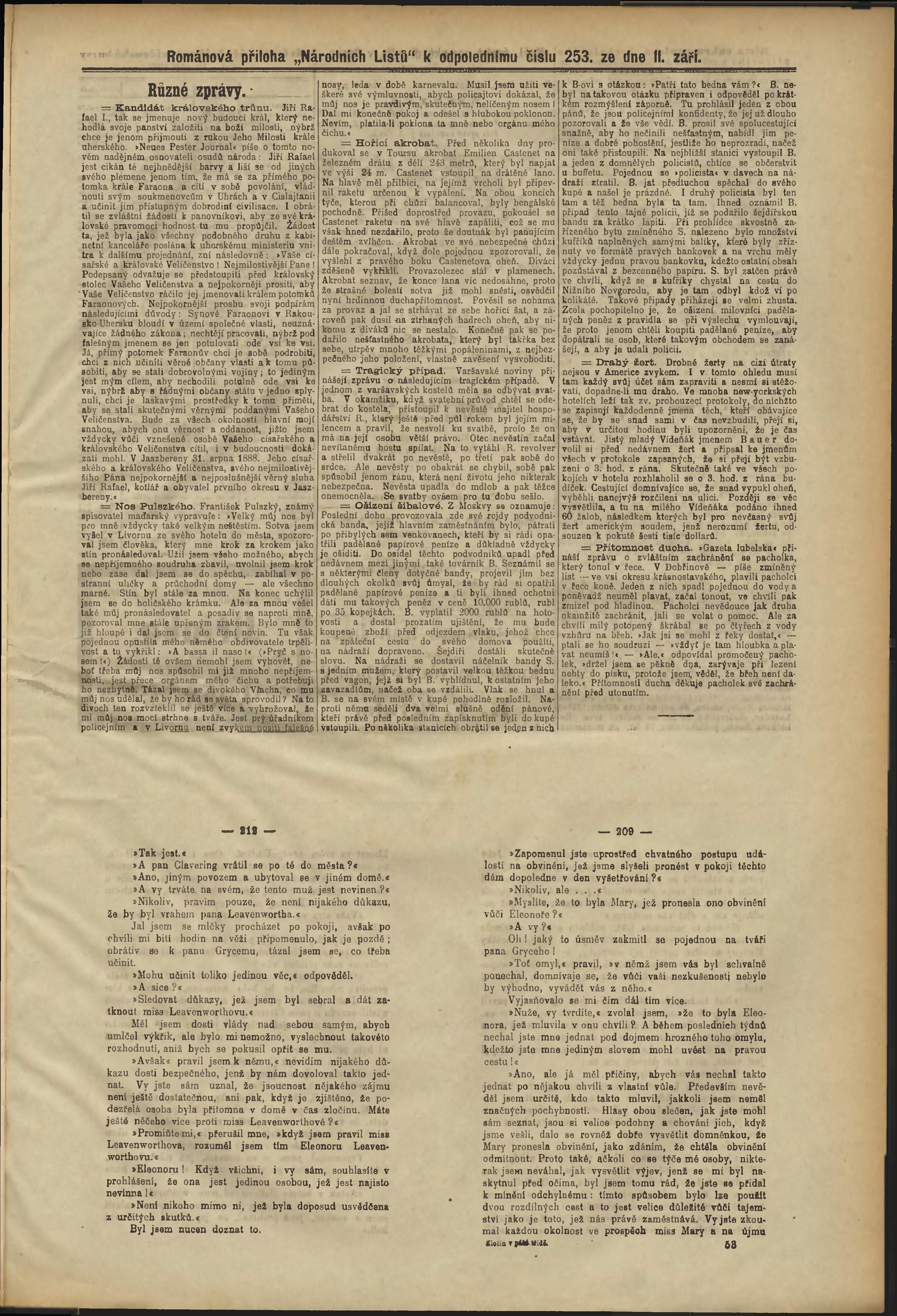 * Datum vydání výtisku: 11.9.1888 Číslo výtisku: 253 Poznámky k výtisku: odpolední vydání;