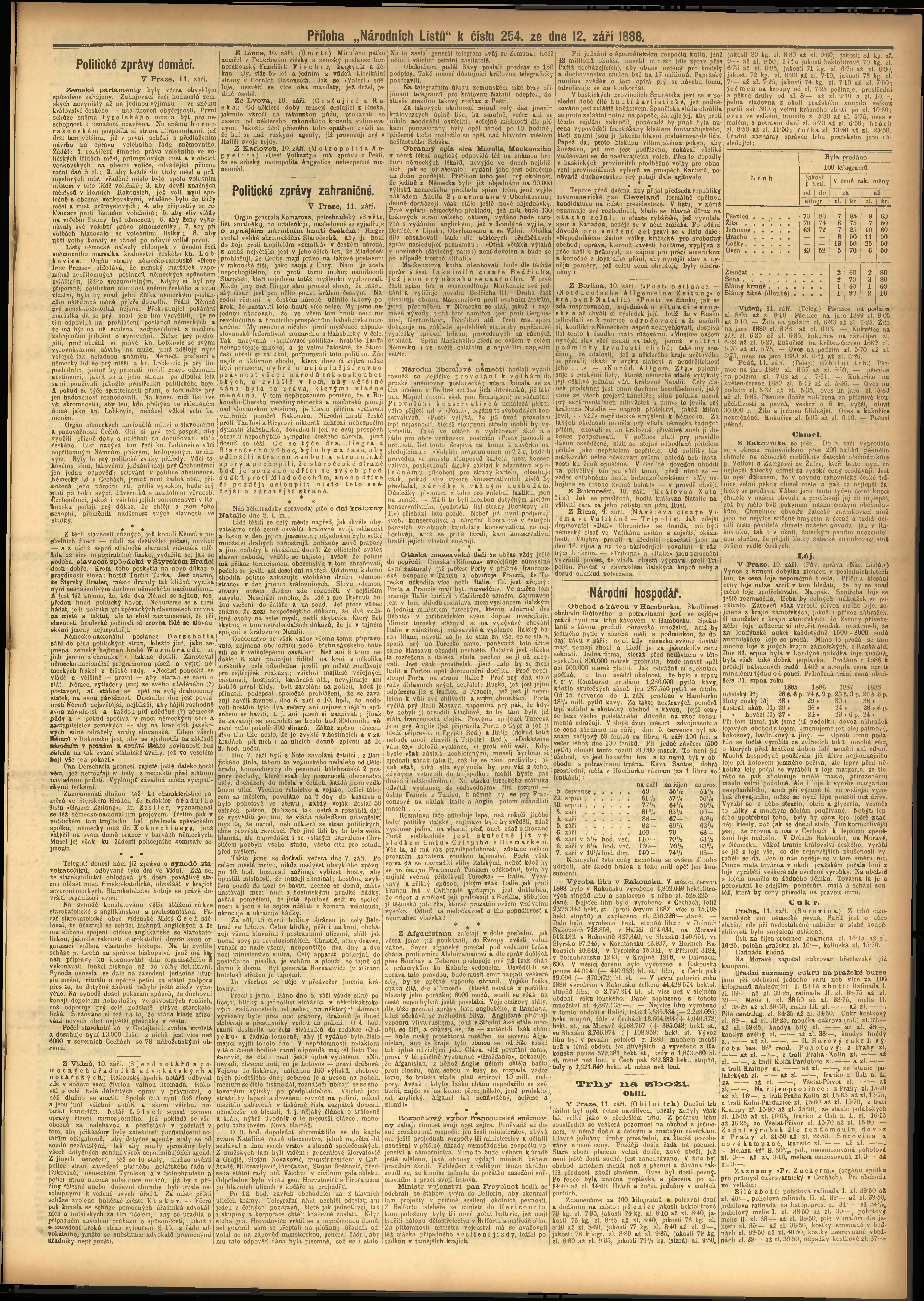 * Datum vydání výtisku: 12.9.1888 Číslo výtisku: 254