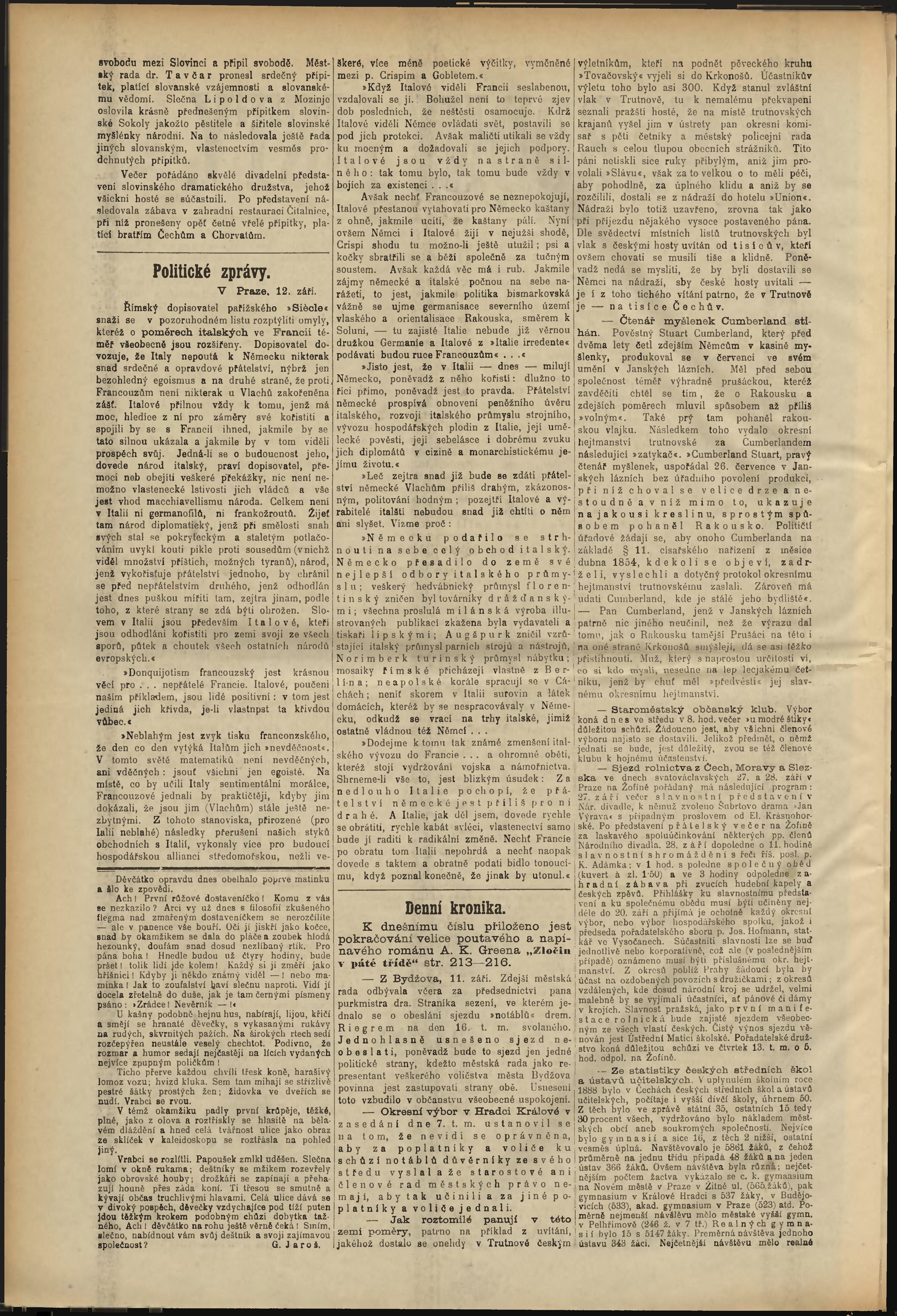 * Datum vydání výtisku: 12.9.1888 Číslo výtisku: 254 Poznámky k výtisku: odpolední vydání;