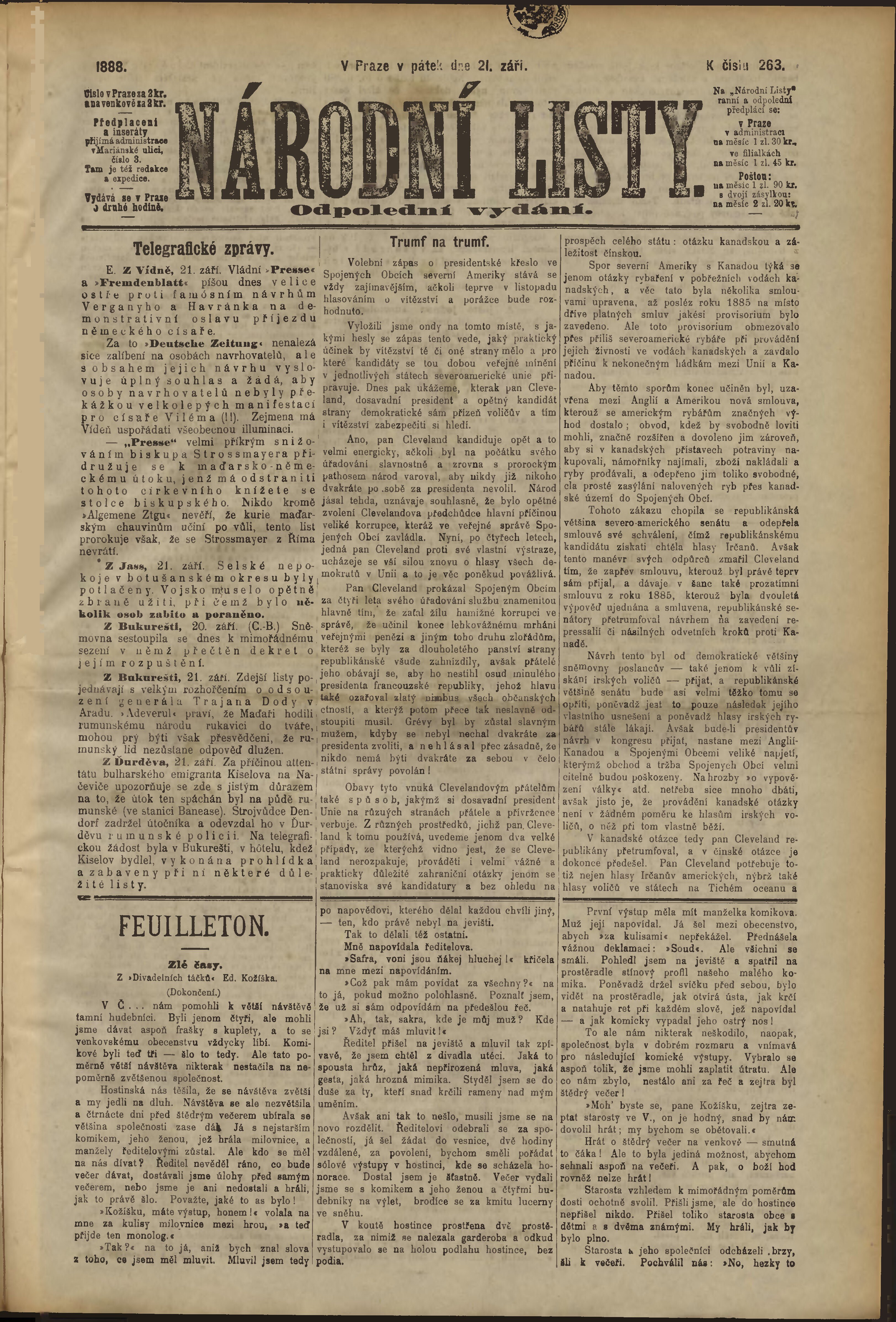 * Datum vydání výtisku: 21.9.1888 Číslo výtisku: 263 Poznámky k výtisku: odpolední vydání;