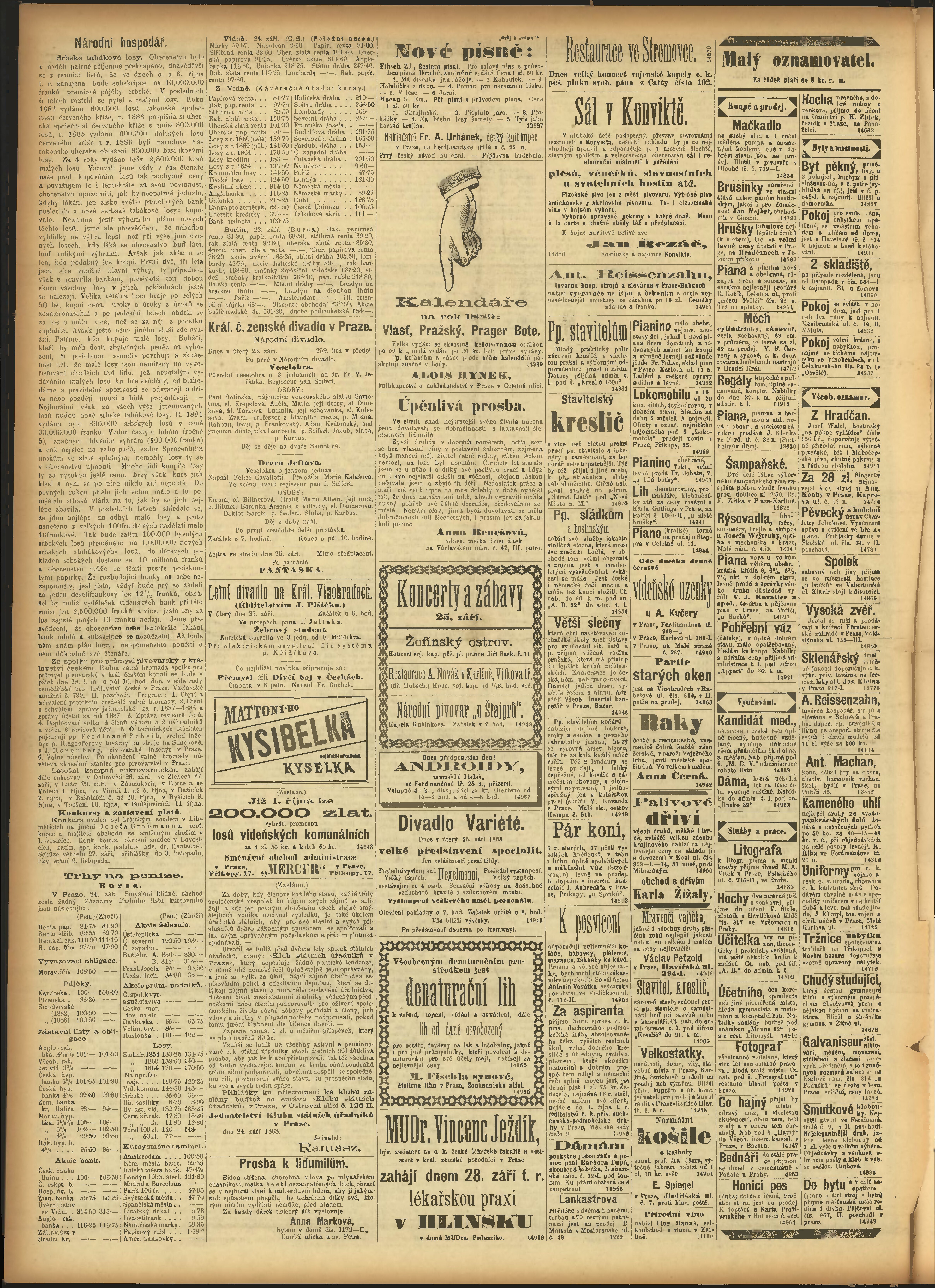 * Datum vydání výtisku: 25.9.1888 Číslo výtisku: 267