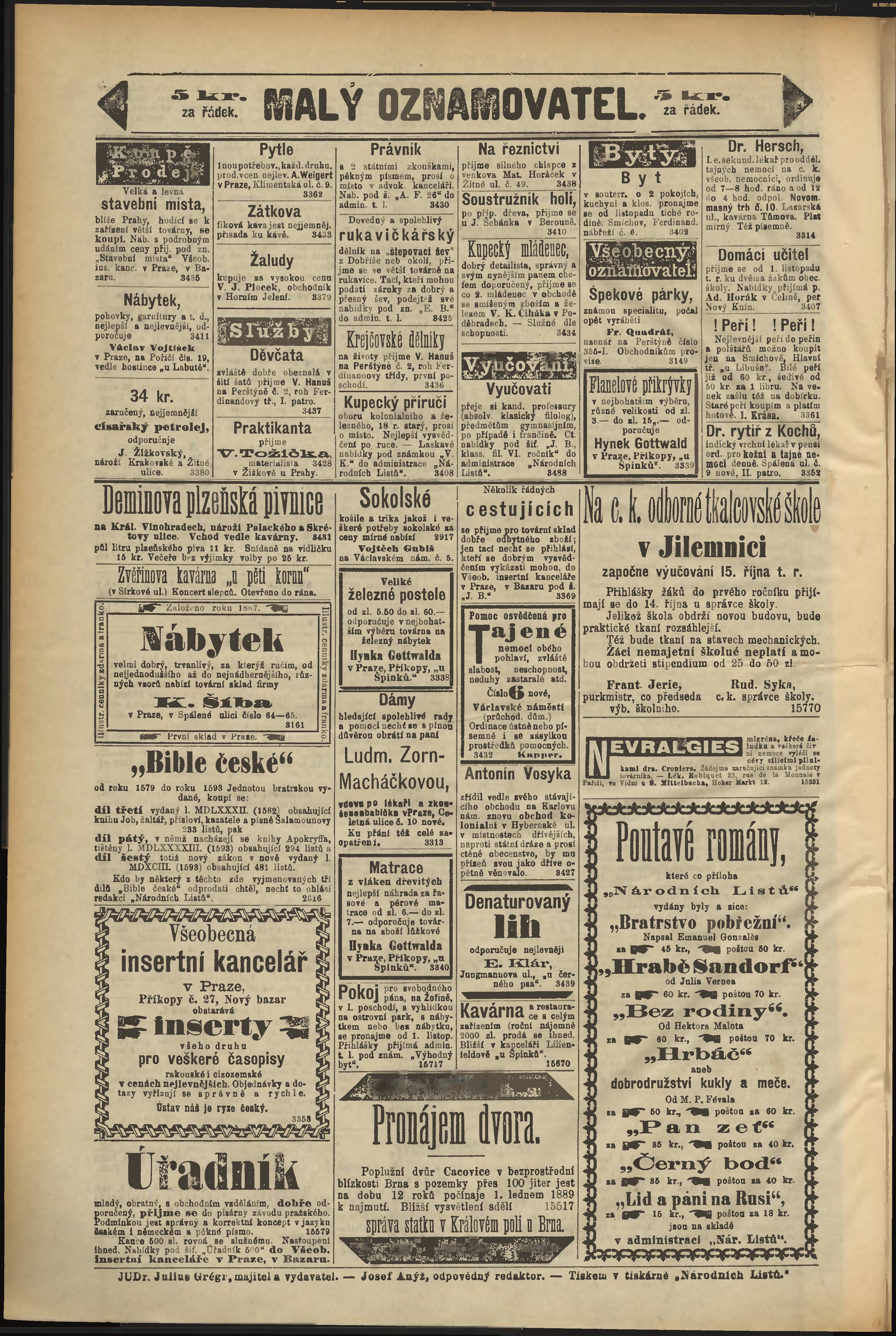 * Datum vydání výtisku: 5.10.1888 Číslo výtisku: 277 Poznámky k výtisku: odpolední vydání;
