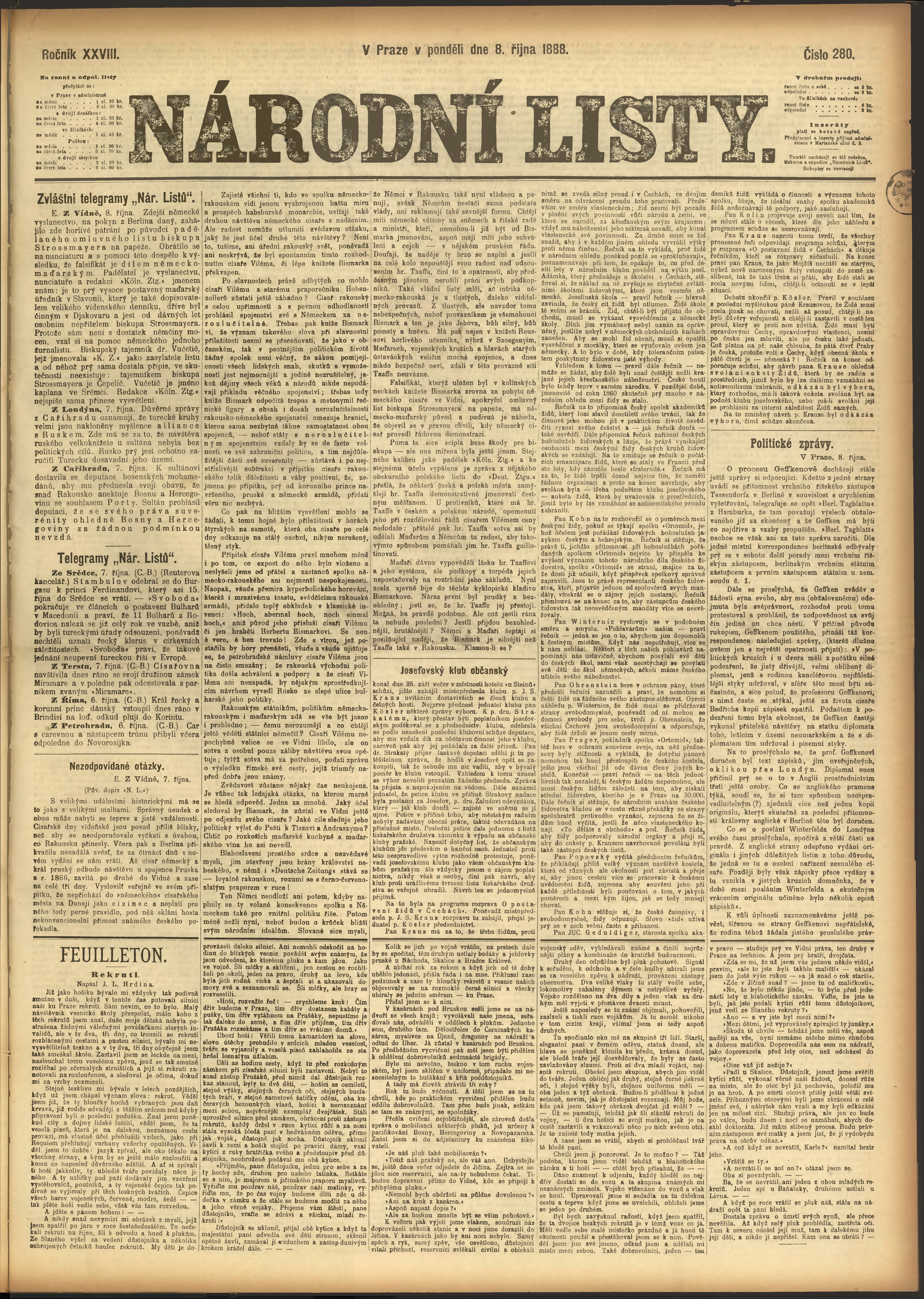 * Datum vydání výtisku: 8.10.1888 Číslo výtisku: 280