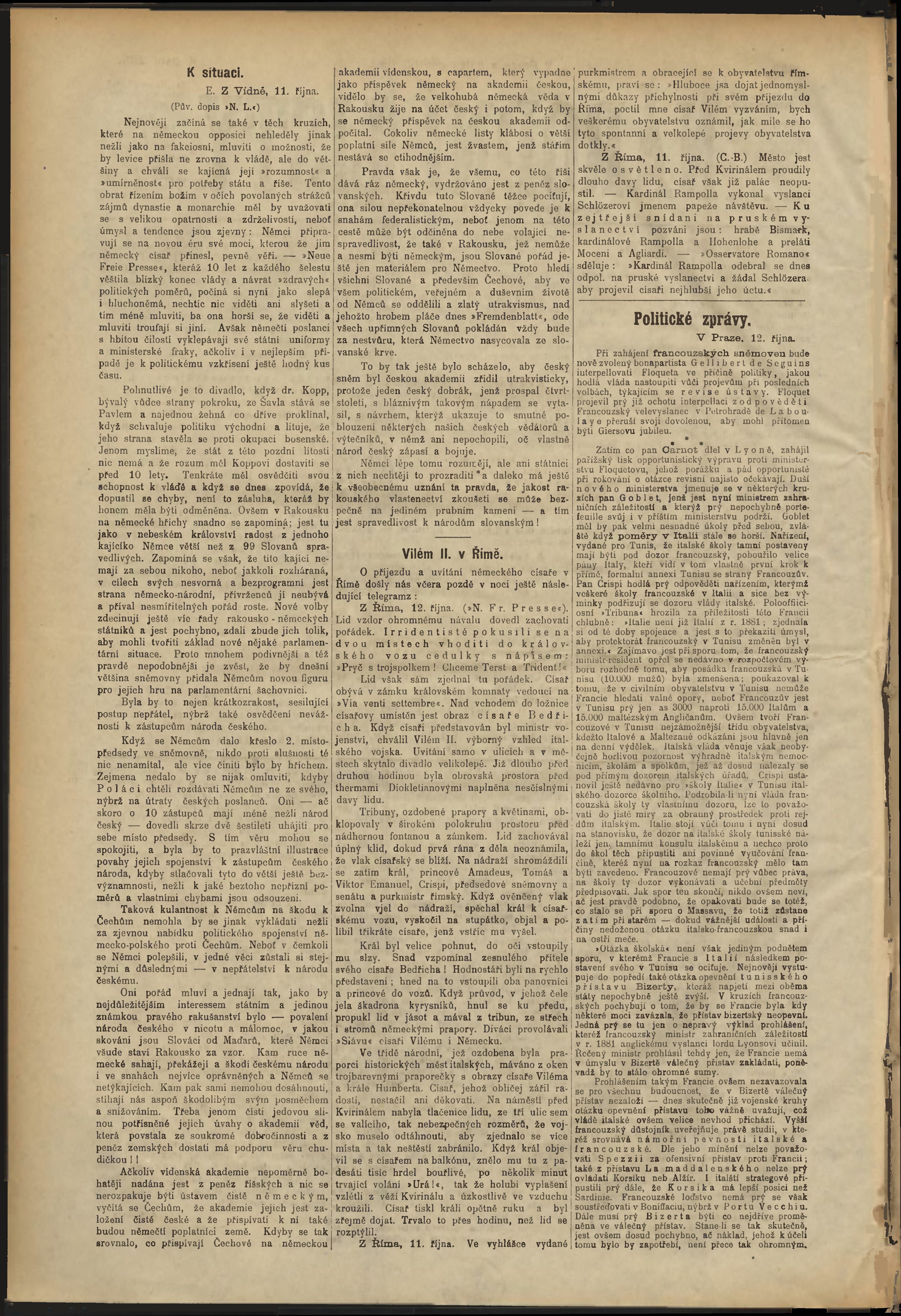 * Datum vydání výtisku: 12.10.1888 Číslo výtisku: 284 Poznámky k výtisku: odpolední vydání;