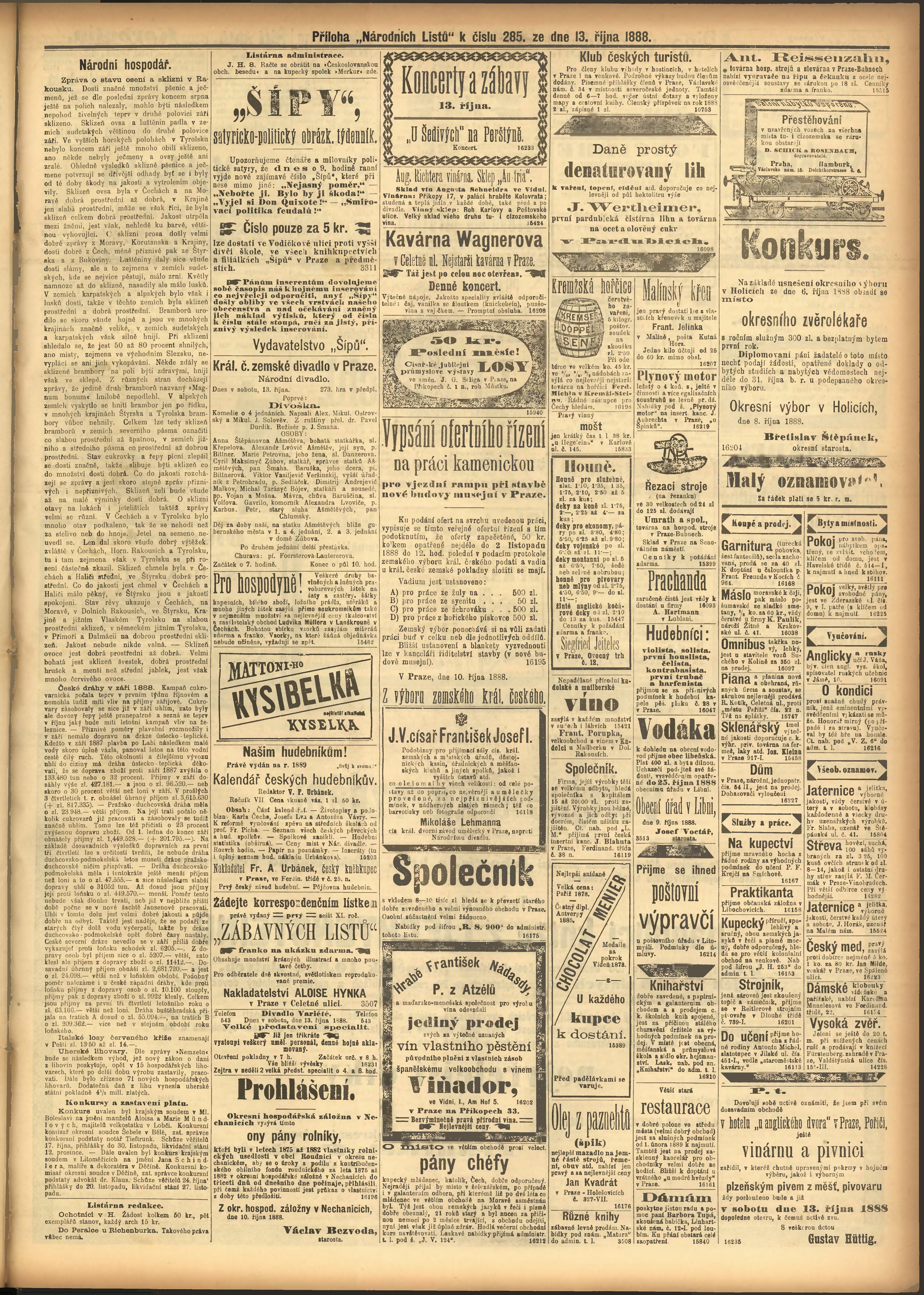 * Datum vydání výtisku: 13.10.1888 Číslo výtisku: 285