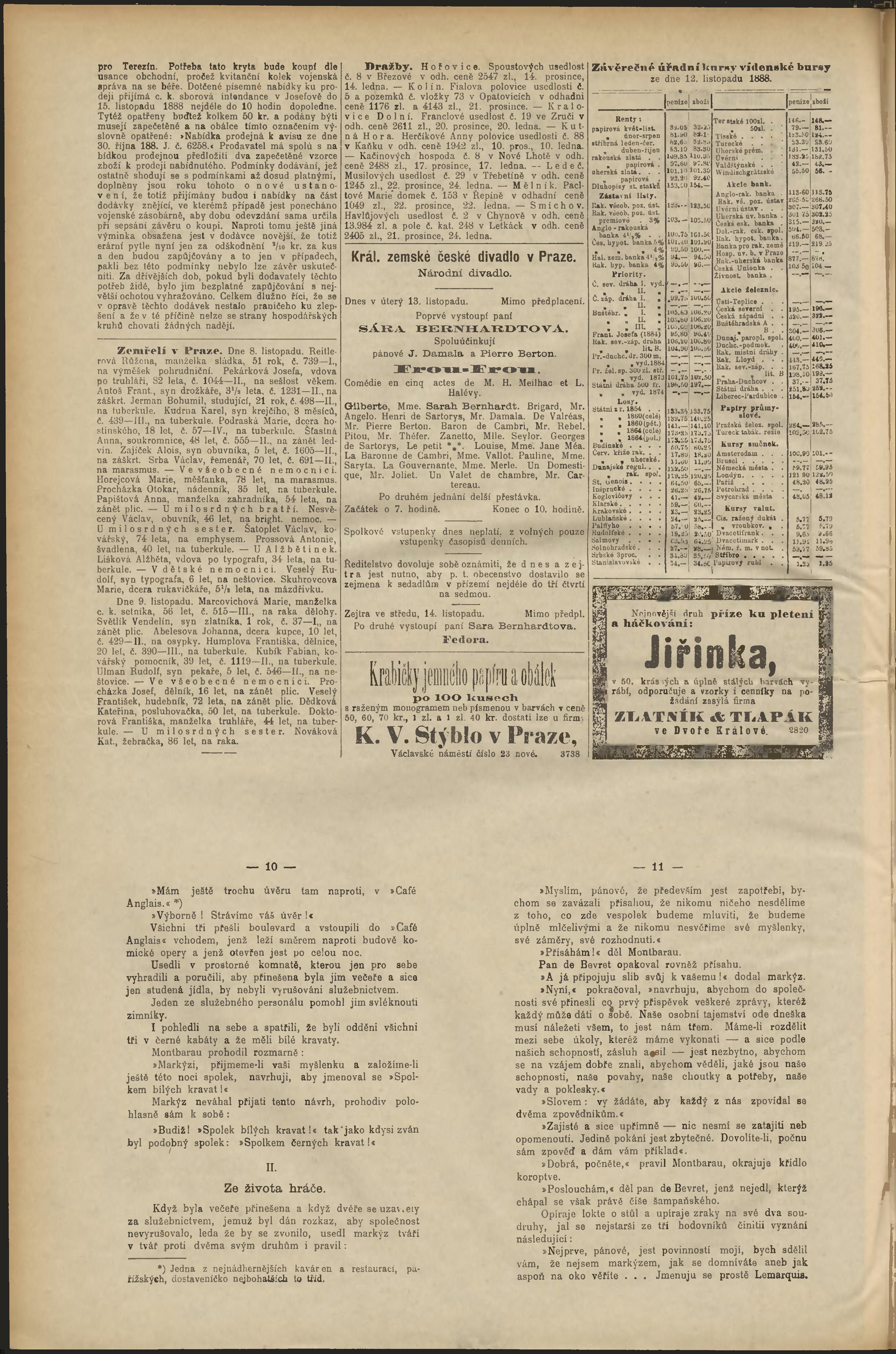 * Datum vydání výtisku: 13.11.1888 Číslo výtisku: 316 Poznámky k výtisku: odpolední vydání;