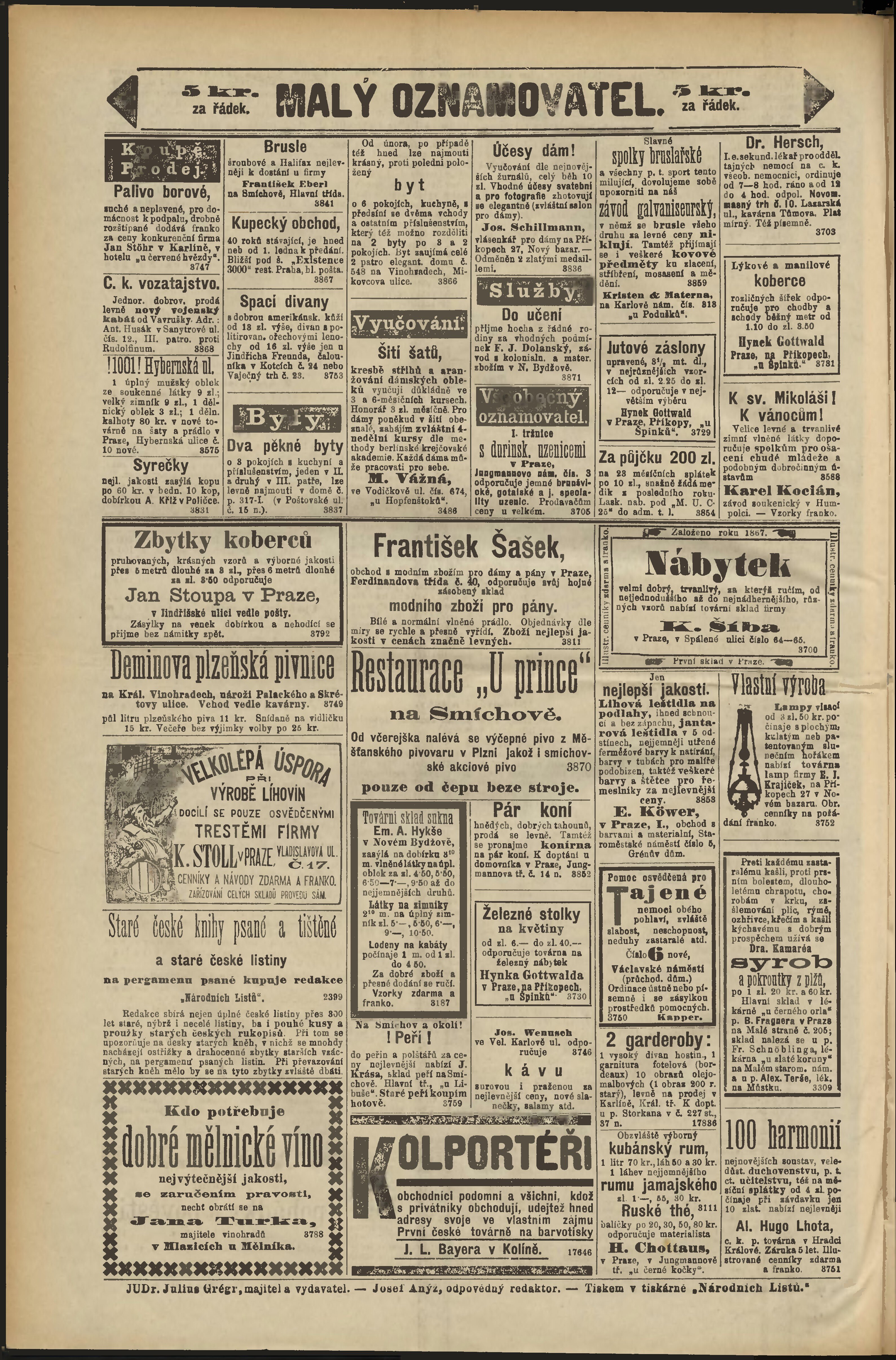 * Datum vydání výtisku: 14.11.1888 Číslo výtisku: 317 Poznámky k výtisku: odpolední vydání;