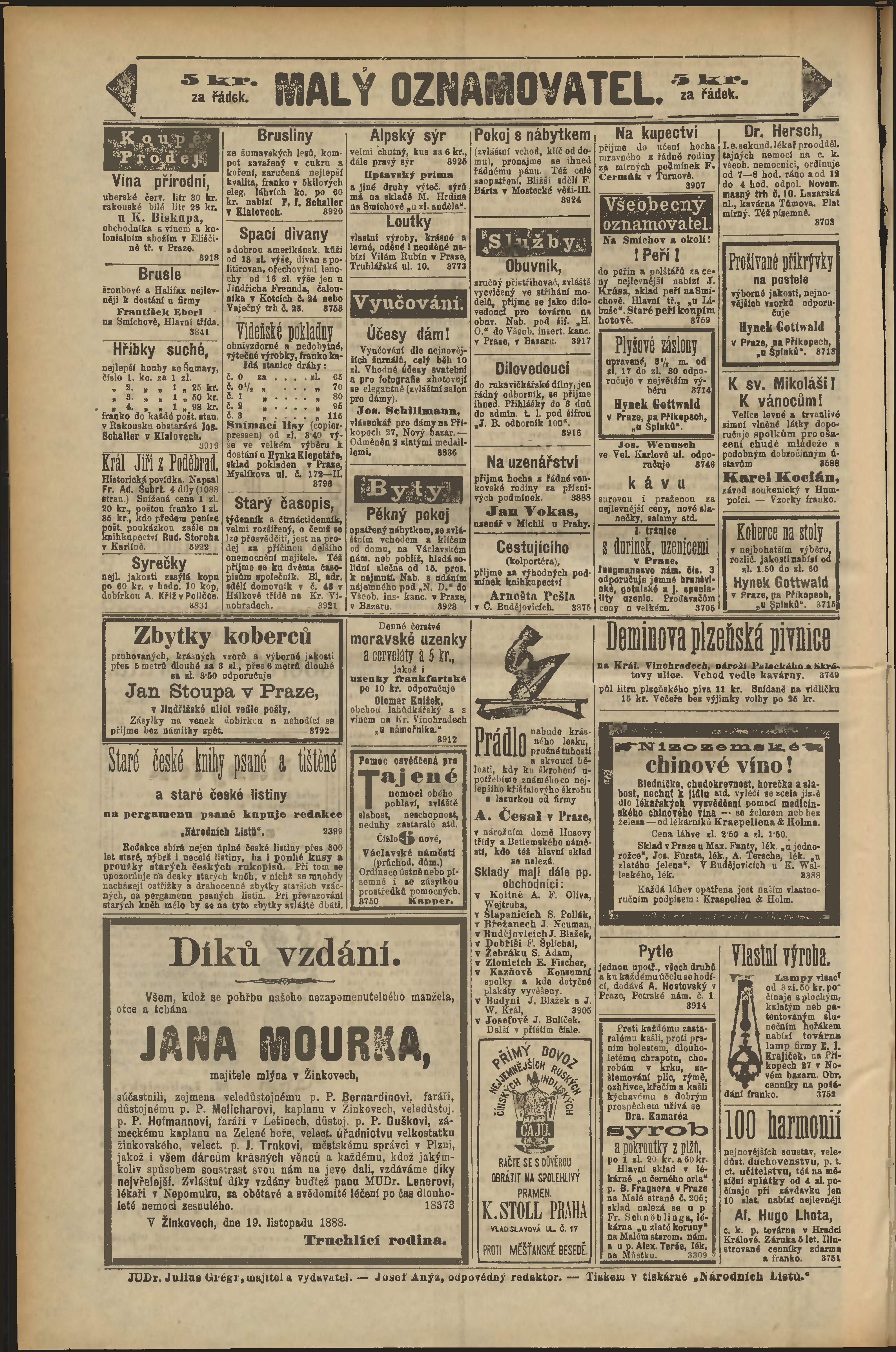 * Datum vydání výtisku: 21.11.1888 Číslo výtisku: 324 Poznámky k výtisku: odpolední vydání;