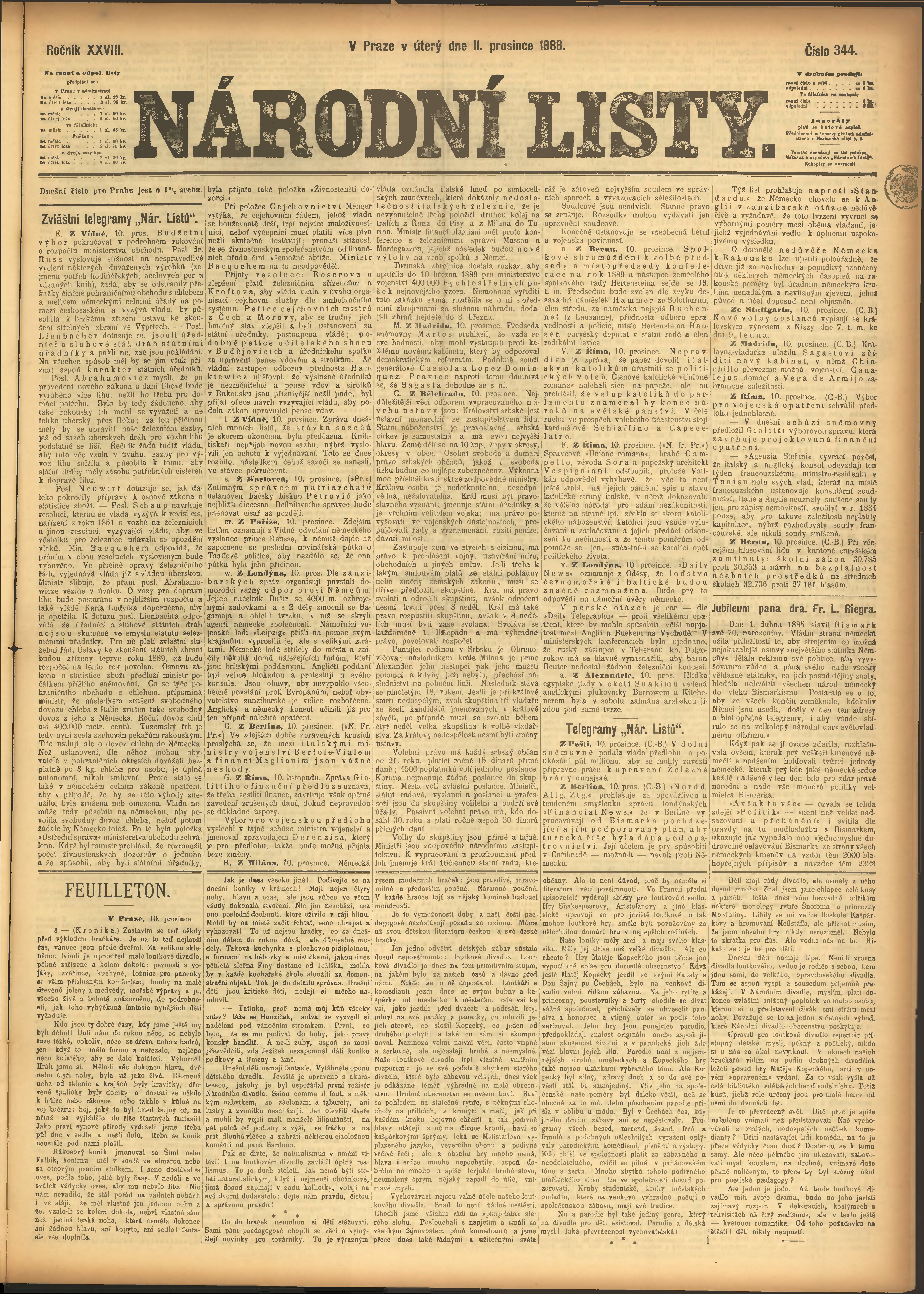 * Datum vydání výtisku: 11.12.1888 Číslo výtisku: 344