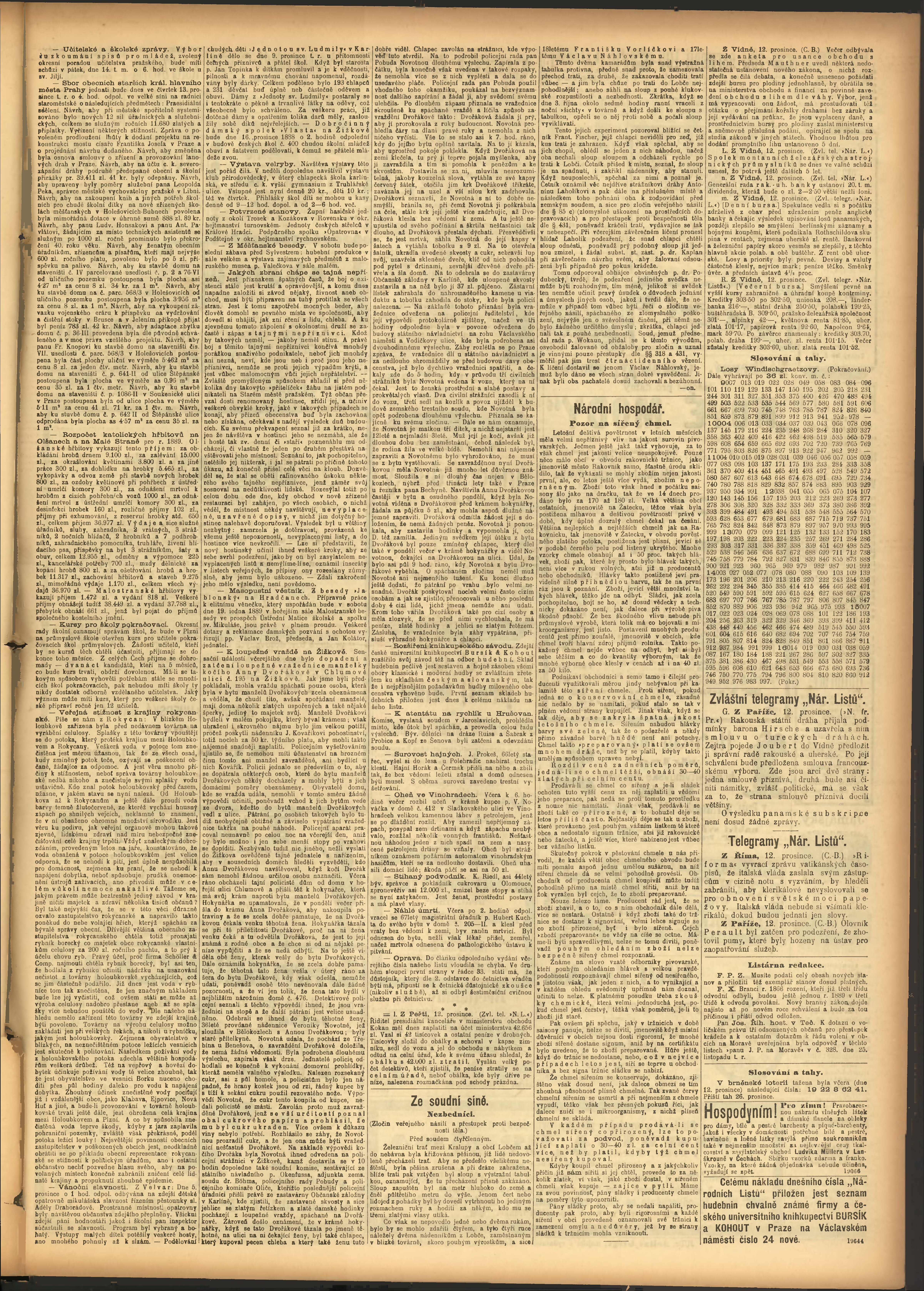 * Datum vydání výtisku: 13.12.1888 Číslo výtisku: 346