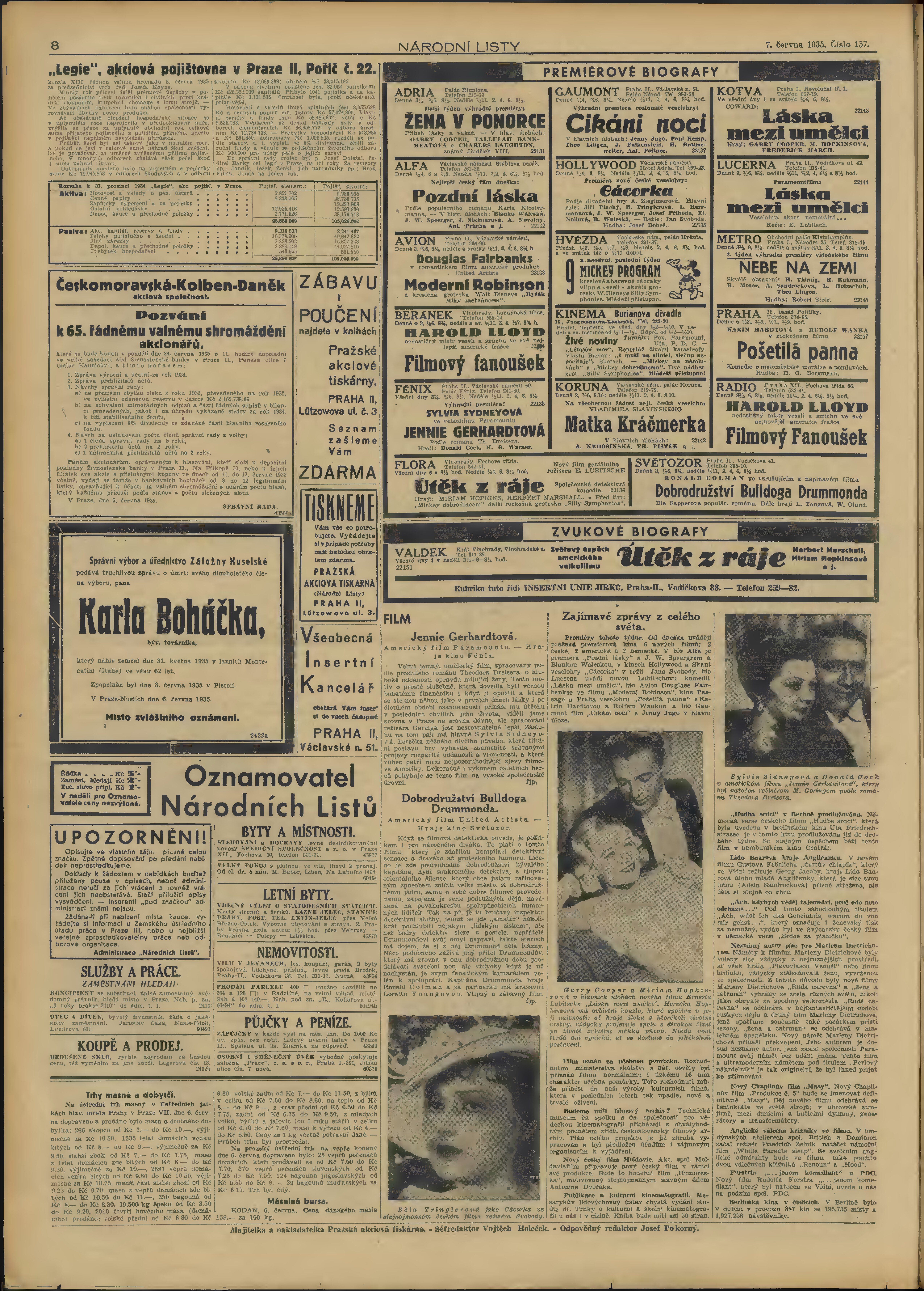 * Datum vydání výtisku: 7.6.1935 Číslo výtisku: 157 Poznámky k výtisku: 3. vydání;