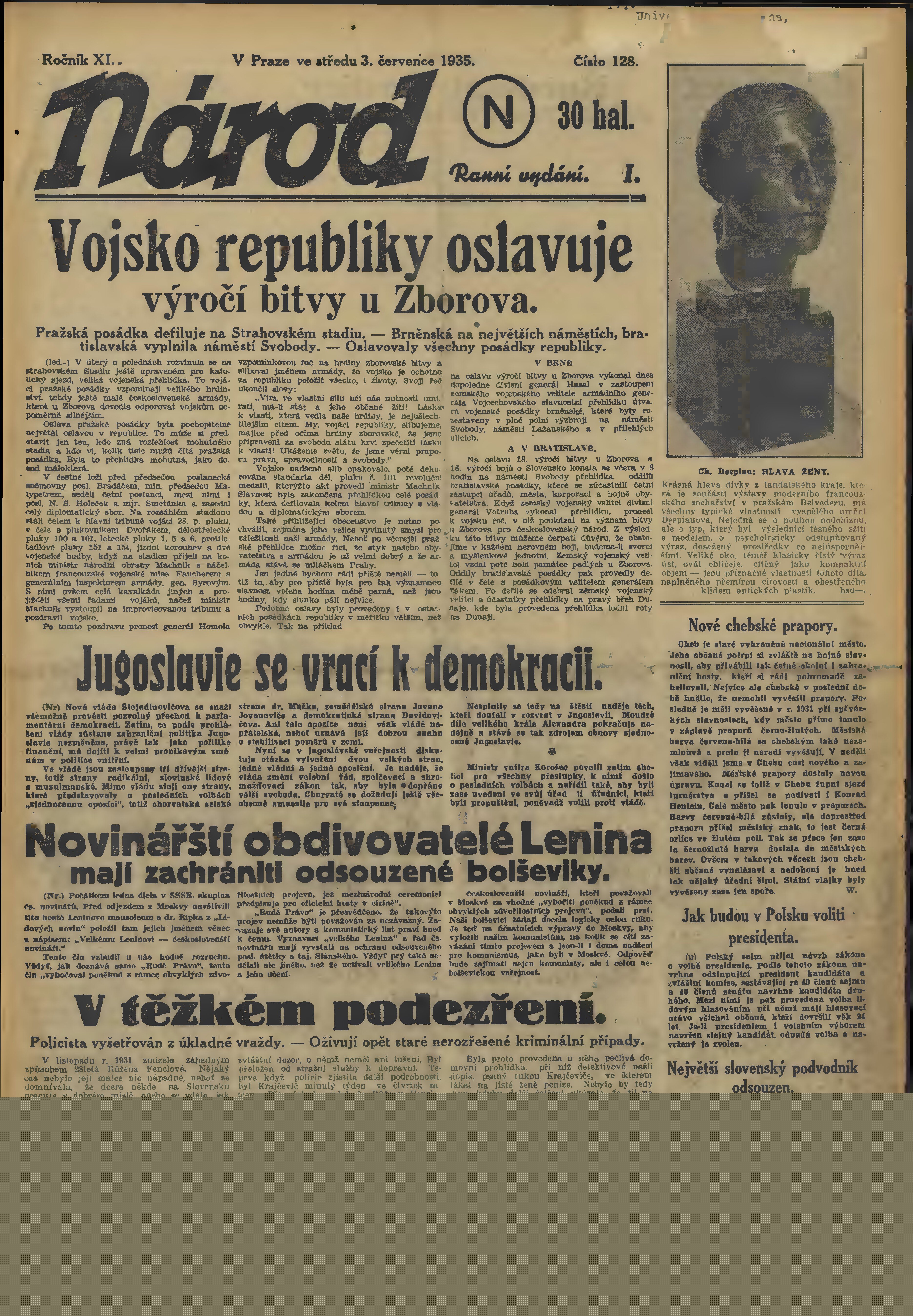 * Datum vydání výtisku: 3.7.1935 Číslo výtisku: 128 Poznámky k výtisku: ranní vydání; 1. vydání;