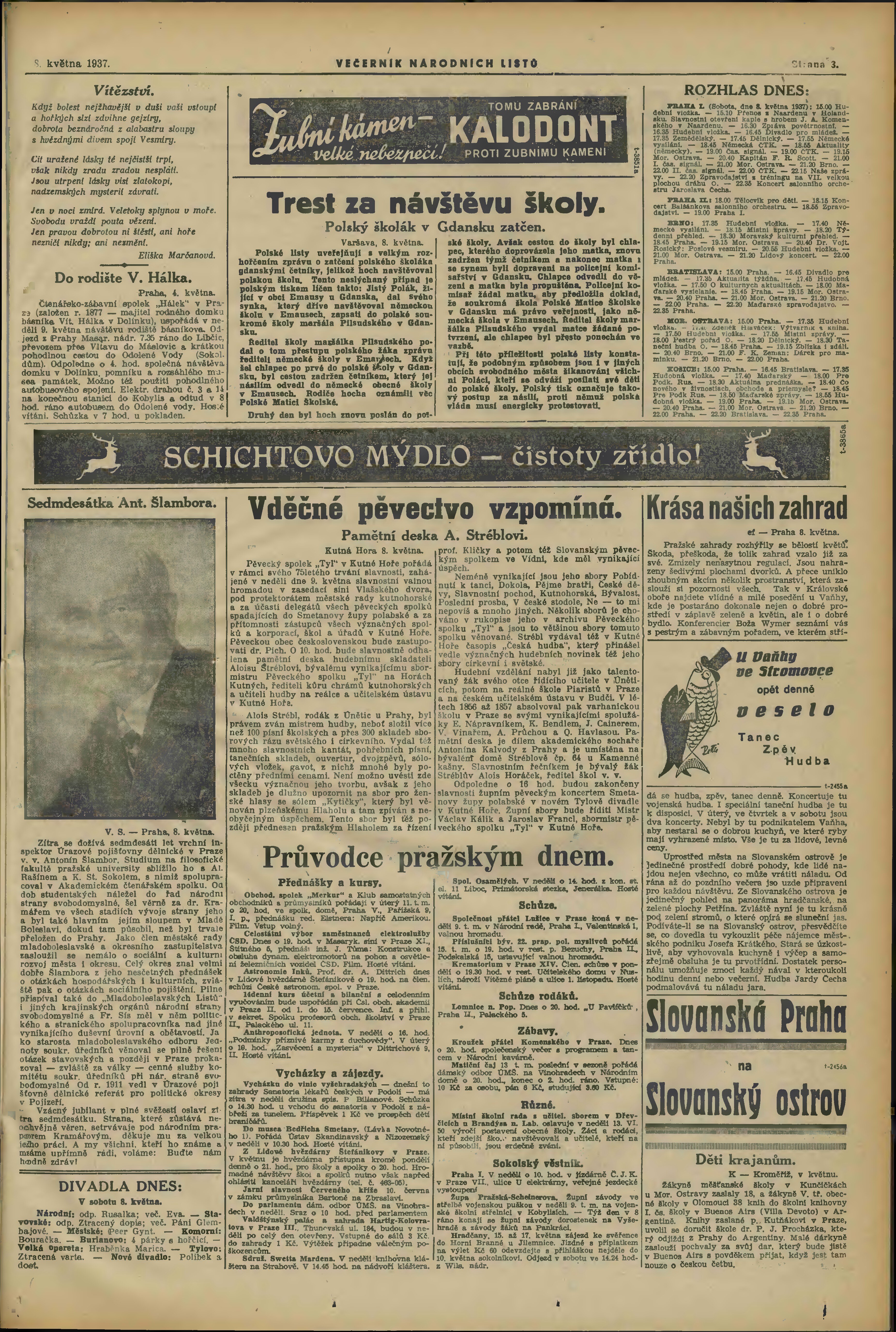* Datum vydání výtisku: 8.5.1937 Číslo výtisku: 126 Poznámky k výtisku: večerní vydání;
