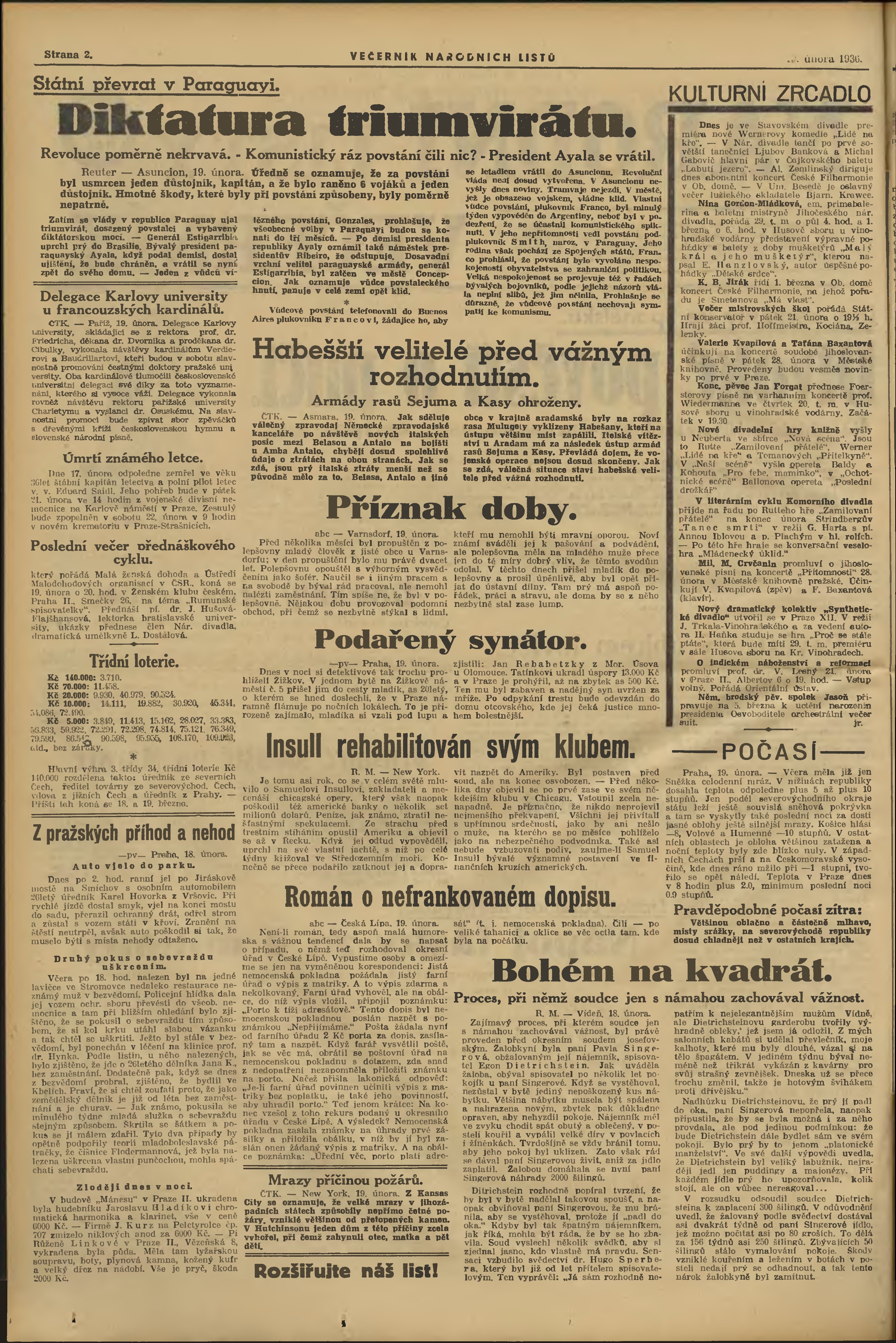 * Datum vydání výtisku: 19.2.1936 Číslo výtisku: 49 Poznámky k výtisku: večerní vydání;