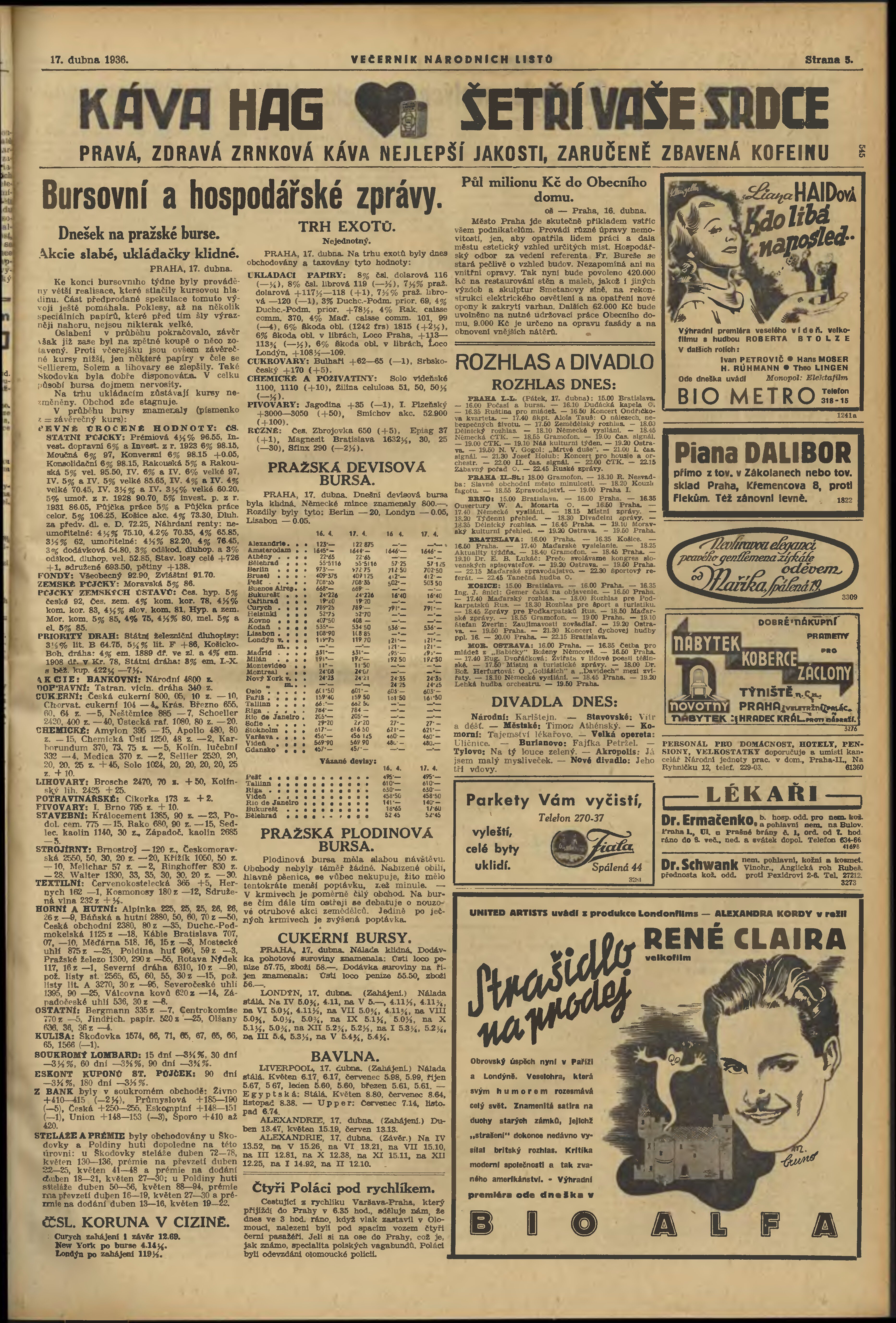 * Datum vydání výtisku: 17.4.1936 Číslo výtisku: 106 Poznámky k výtisku: večerní vydání;