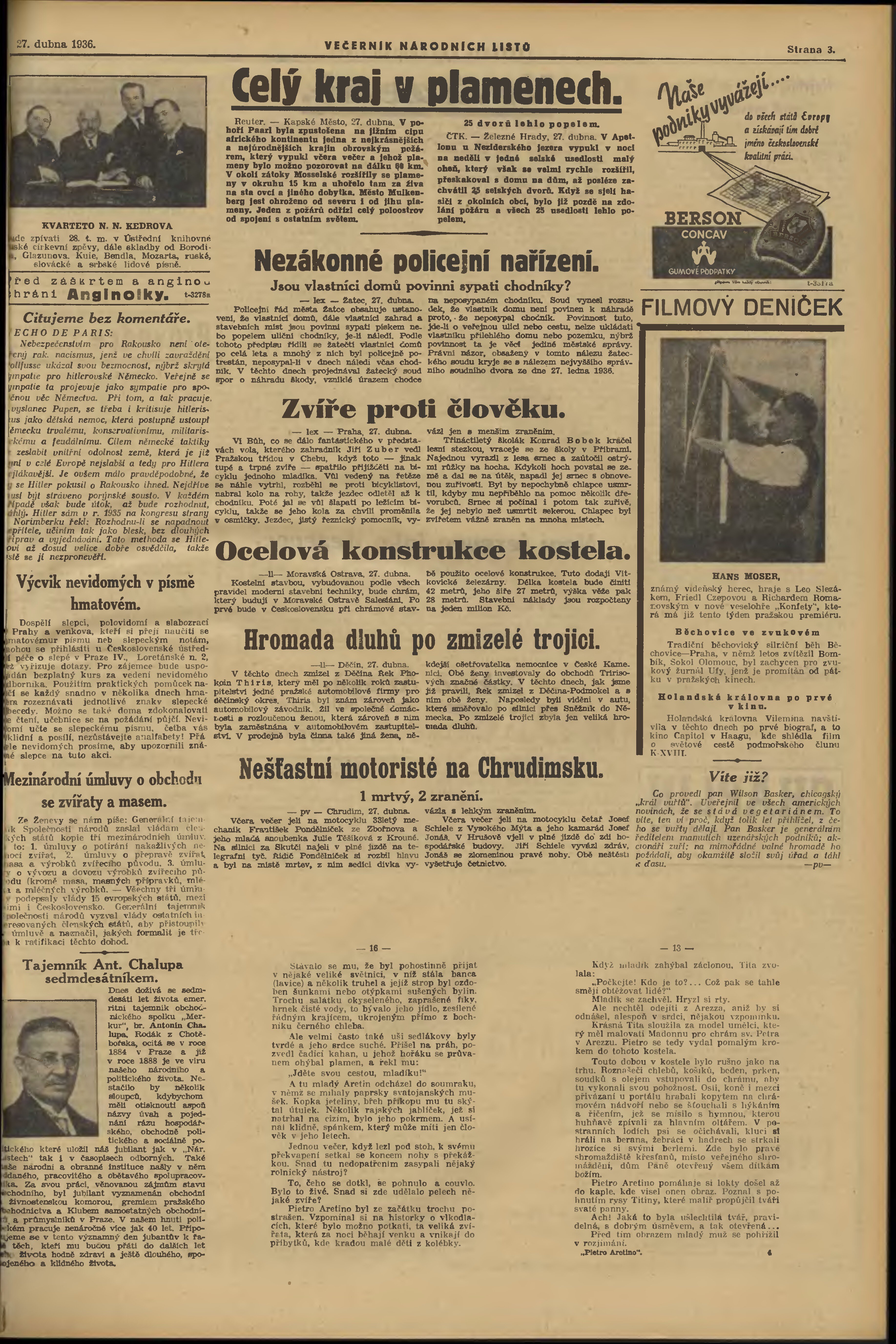 * Datum vydání výtisku: 27.4.1936 Číslo výtisku: 116 Poznámky k výtisku: večerní vydání;