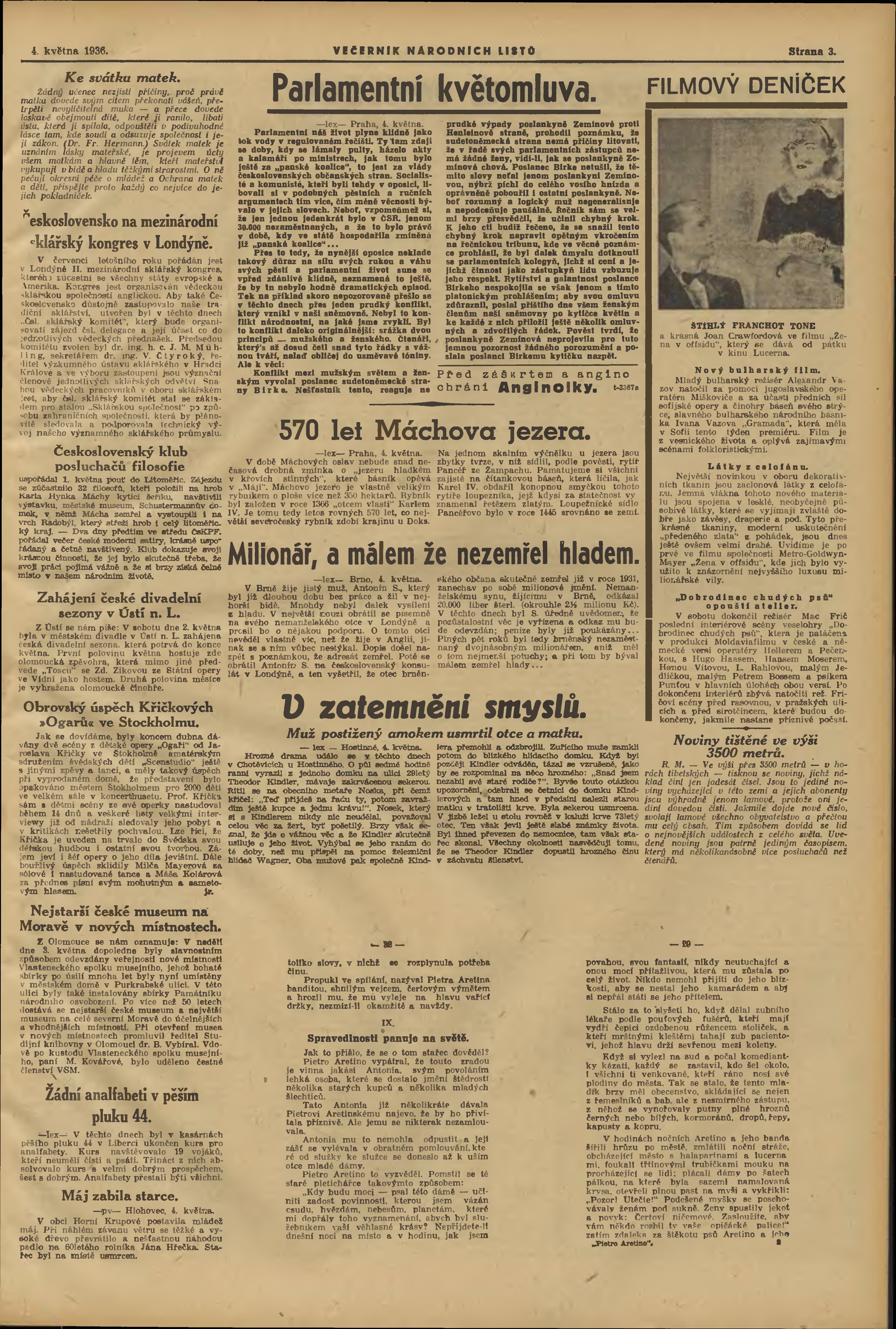 * Datum vydání výtisku: 4.5.1936 Číslo výtisku: 123 Poznámky k výtisku: večerní vydání;
