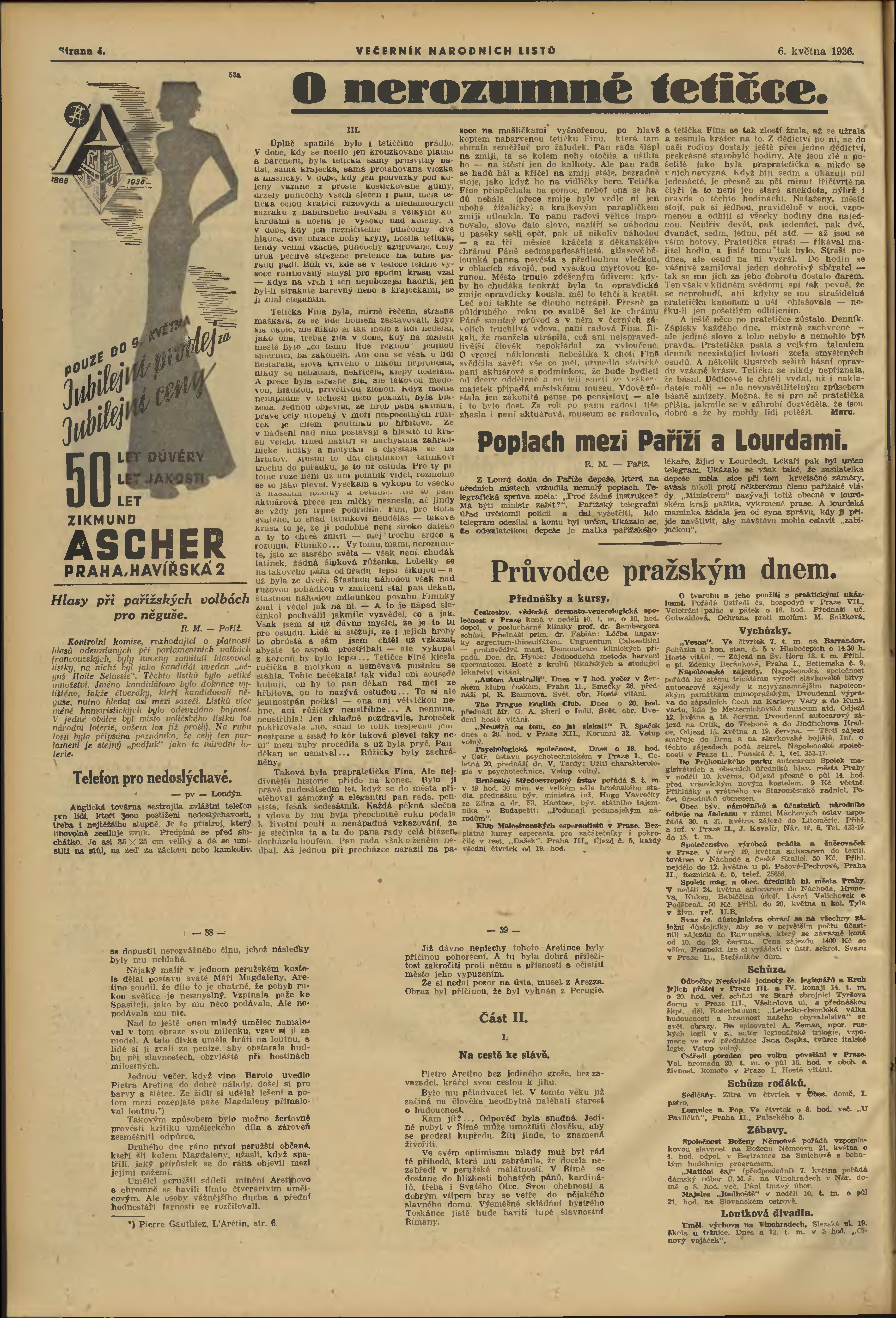 * Datum vydání výtisku: 6.5.1936 Číslo výtisku: 125 Poznámky k výtisku: večerní vydání;