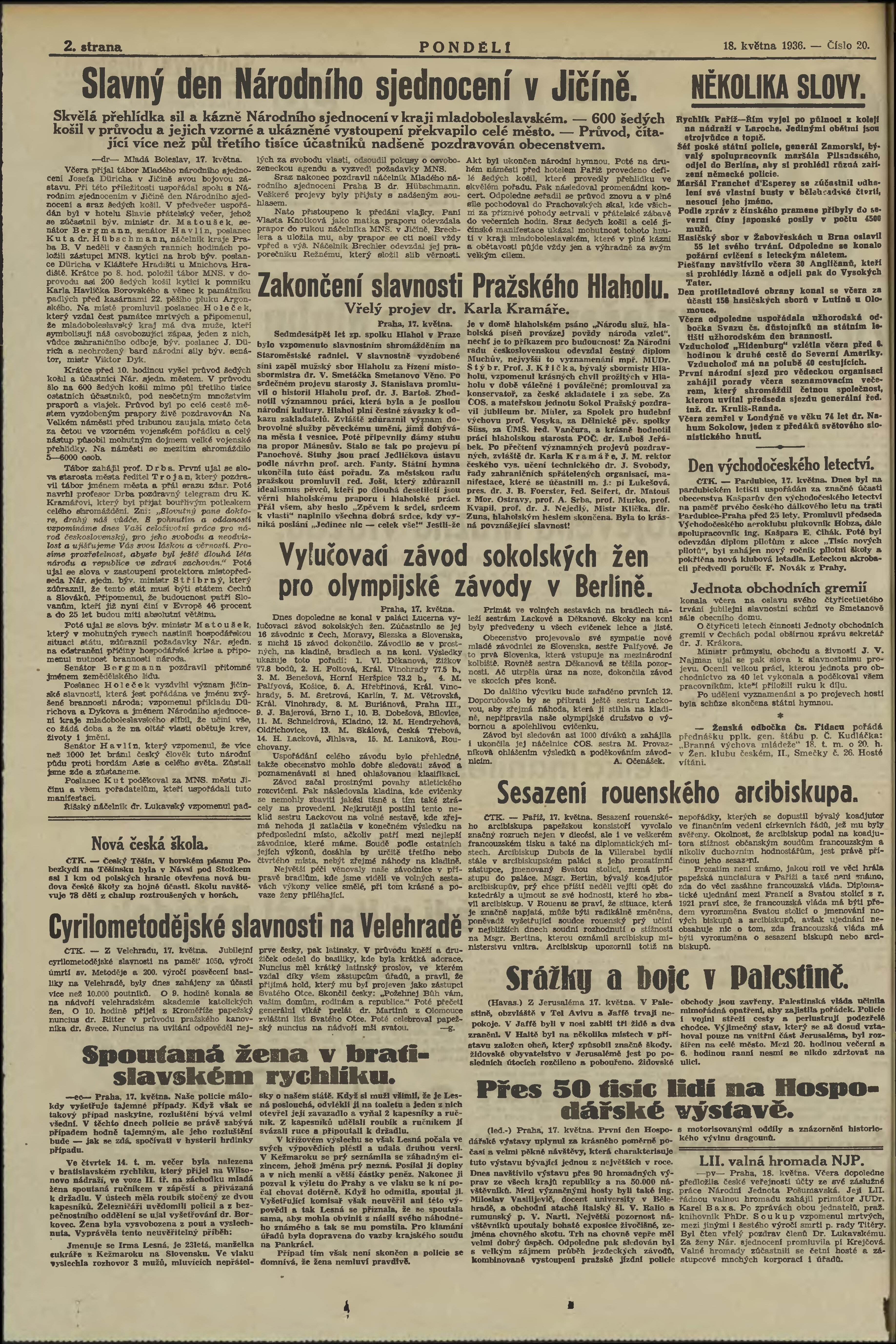 * Datum vydání výtisku: 18.5.1936 Číslo výtisku: 20