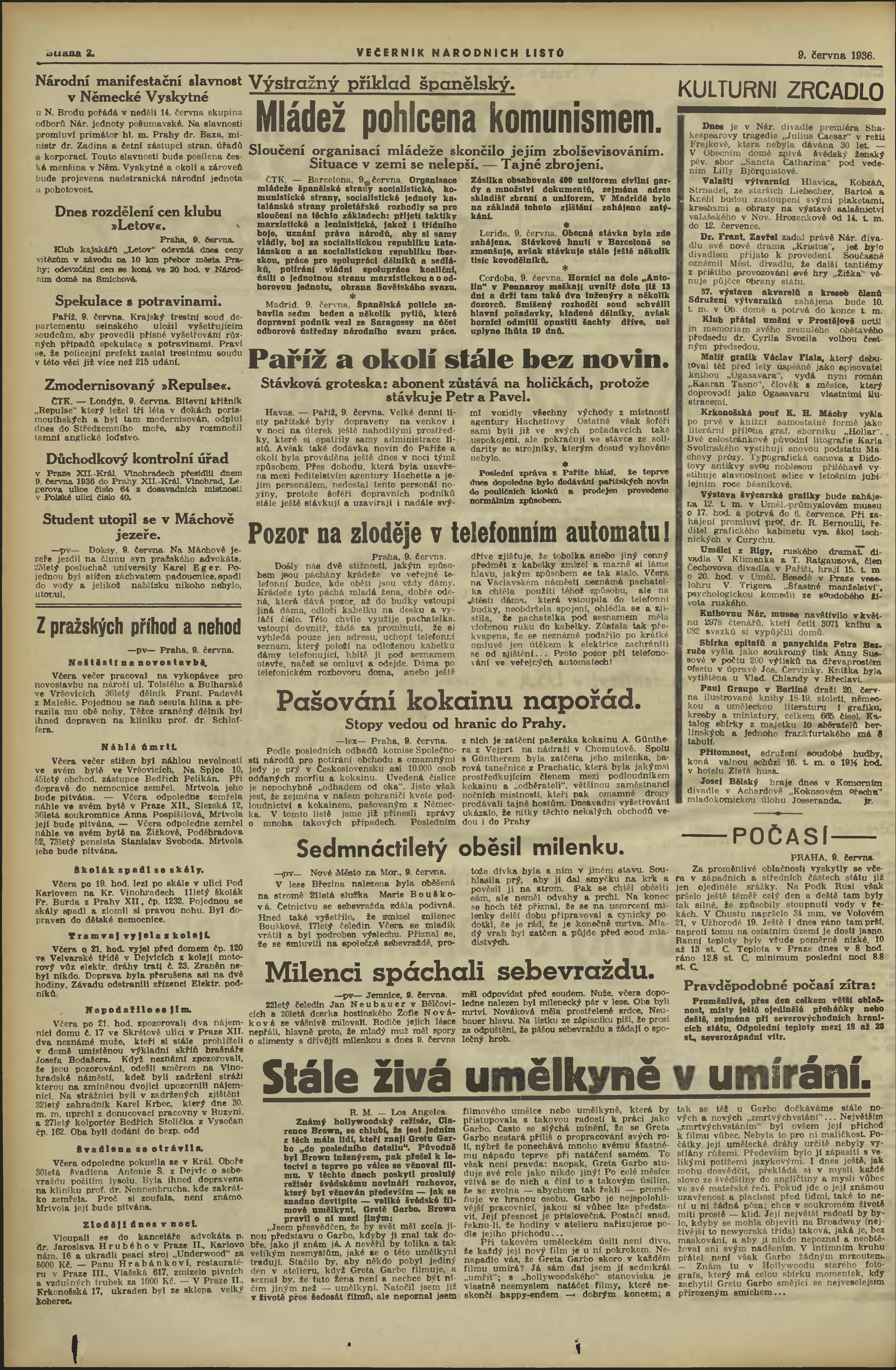 * Datum vydání výtisku: 9.6.1936 Číslo výtisku: 158 Poznámky k výtisku: večerní vydání;