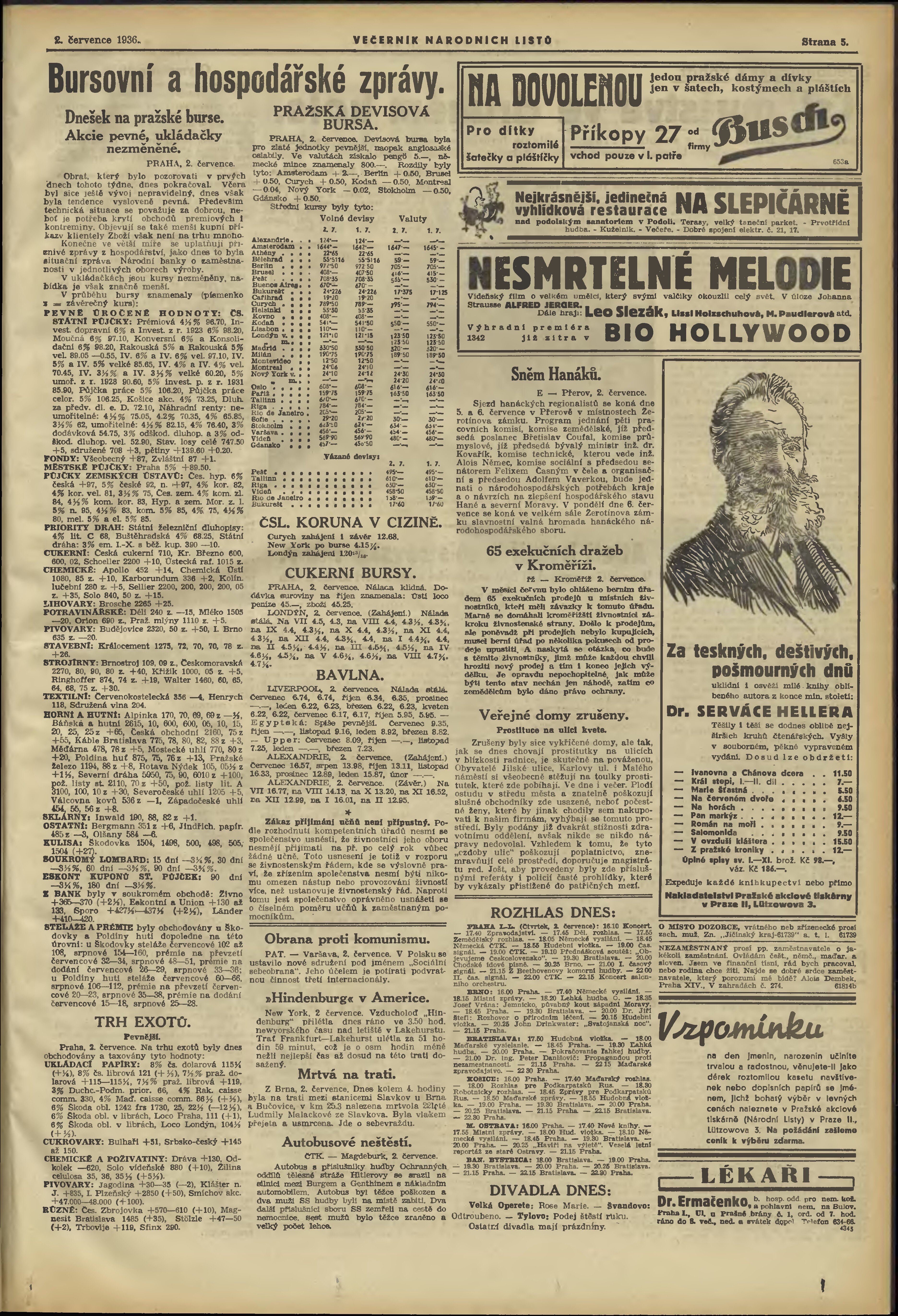 * Datum vydání výtisku: 2.7.1936 Číslo výtisku: 180 Poznámky k výtisku: večerní vydání;