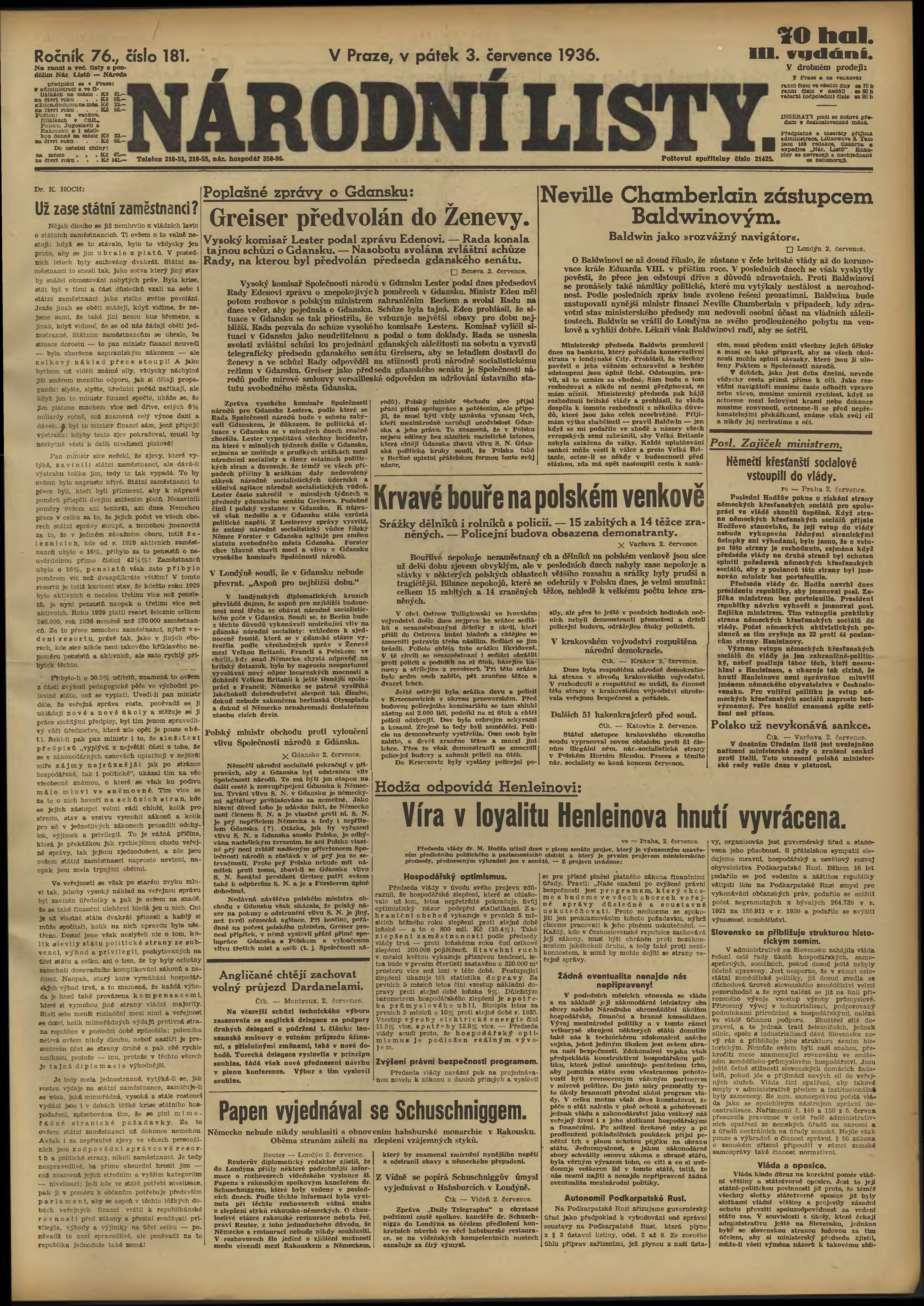 * Datum vydání výtisku: 3.7.1936 Číslo výtisku: 181 Poznámky k výtisku: 3. vydání;