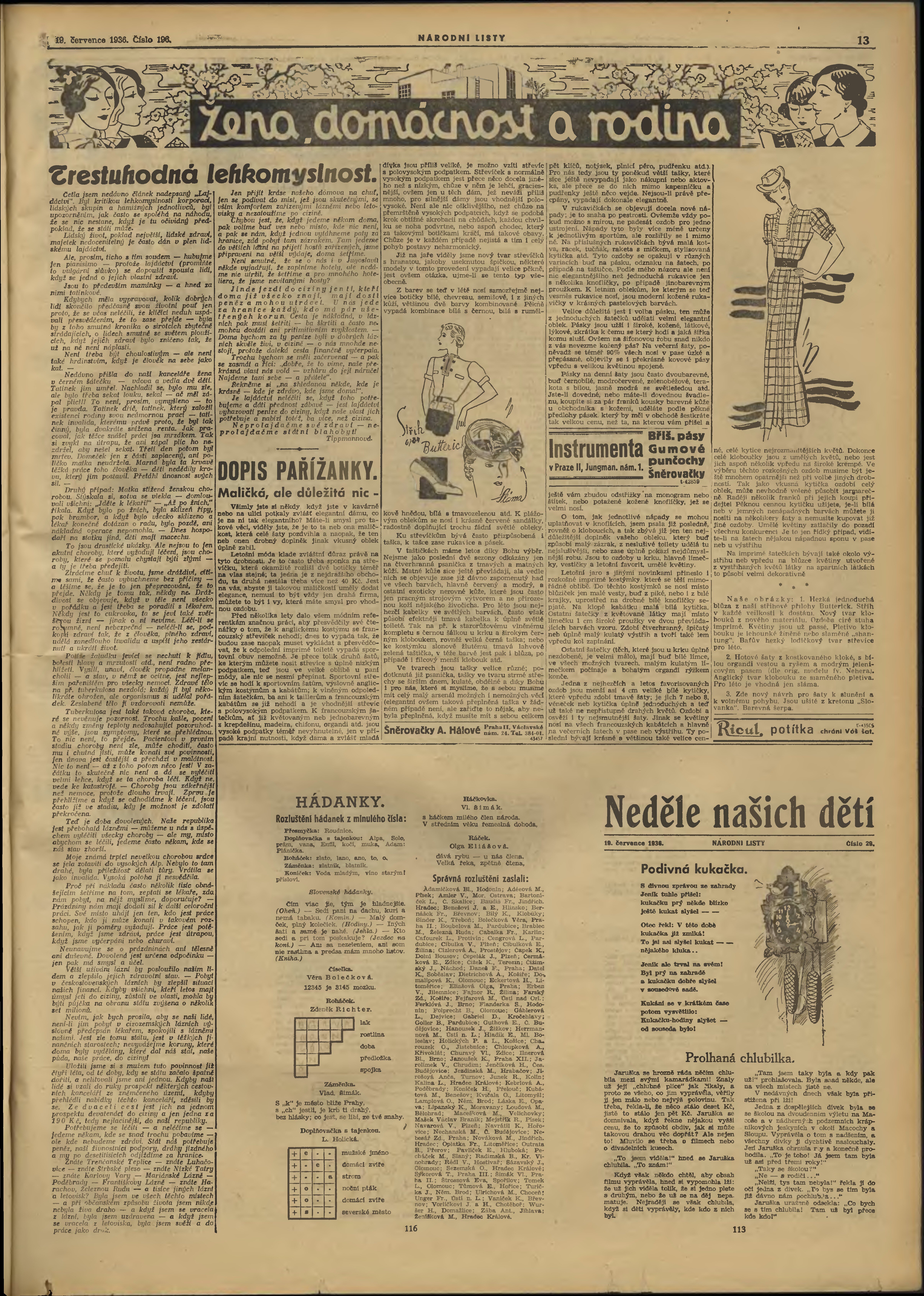 * Datum vydání výtisku: 19.7.1936 Číslo výtisku: 196 Poznámky k výtisku: 3. vydání;