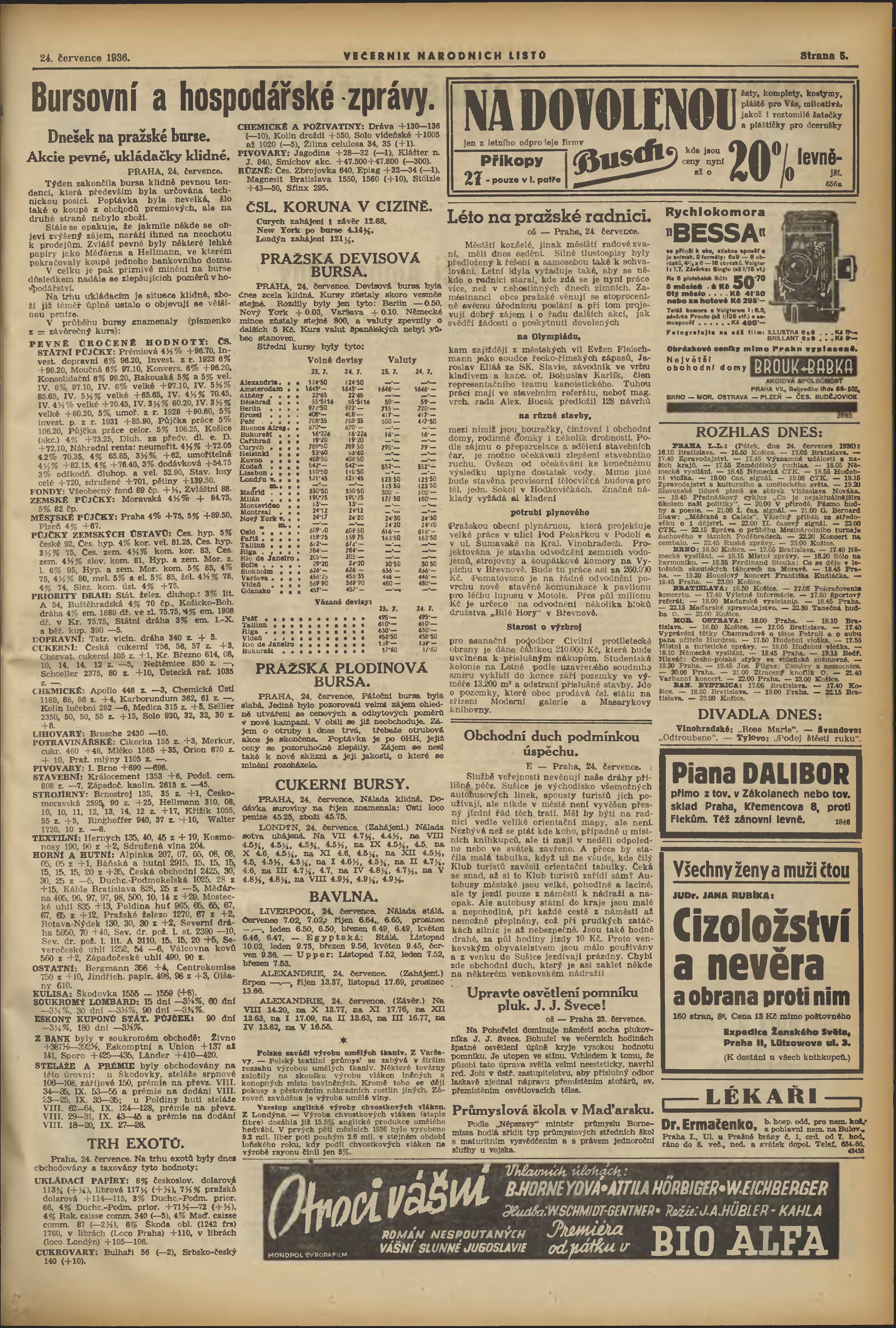 * Datum vydání výtisku: 24.7.1936 Číslo výtisku: 201 Poznámky k výtisku: večerní vydání;